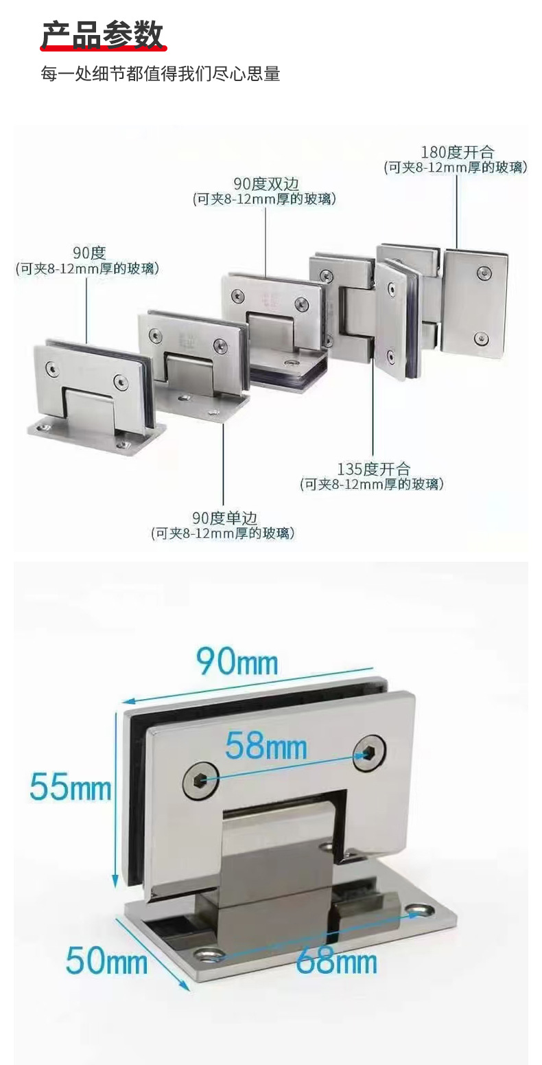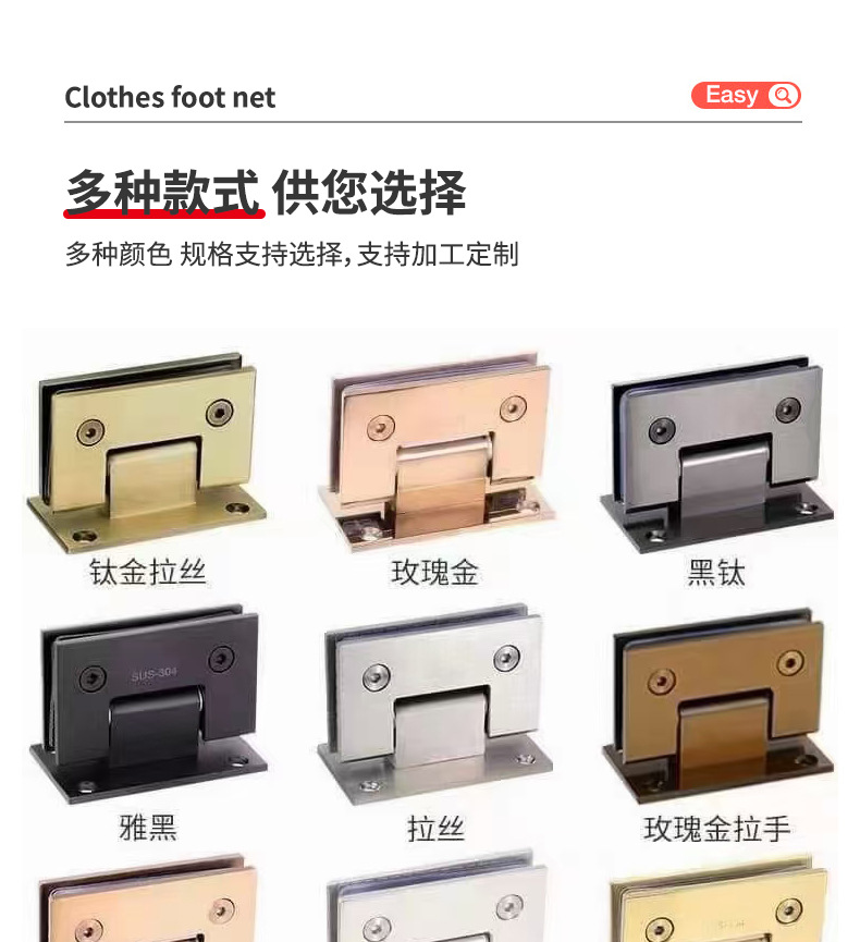 Клипса для безрамной стеклянной двери из нержавеющей стали 304, 90 градусов, черная, 180 градусов, титановая петля для душевой кабины