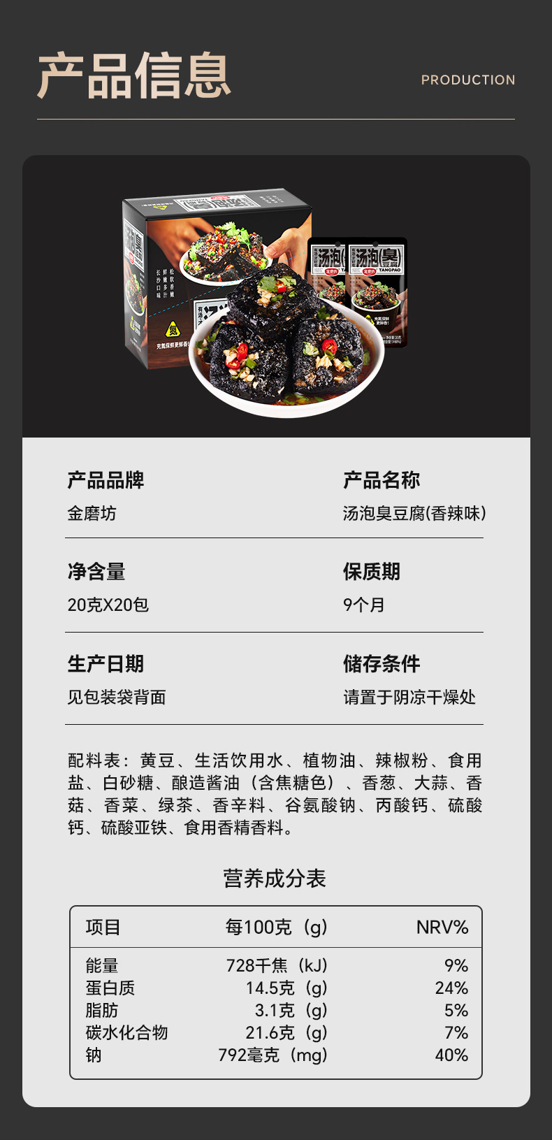 Джинмофан 20г*20 пакетов супового вонючего тофу, Чанша, нежный и сочный, с азотом для свежести, острая закуска