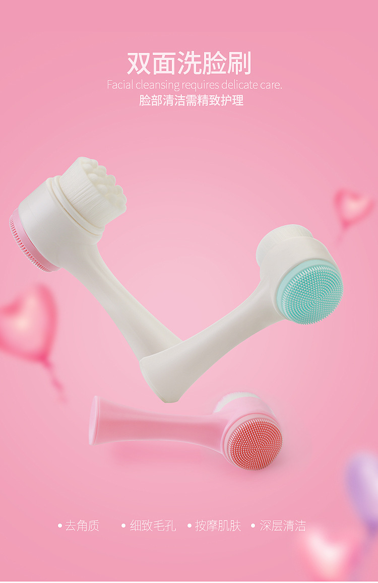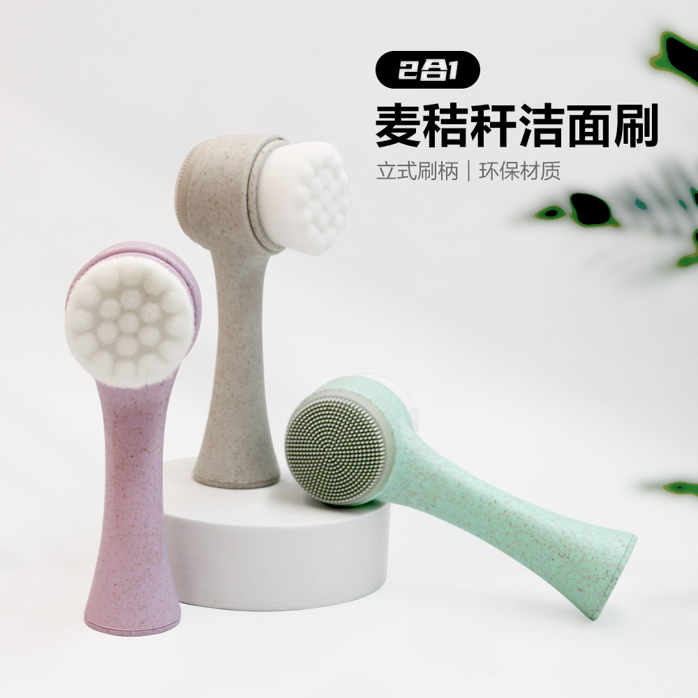 Силиконовая щетка для умывания лица с мягкой щетиной, двусторонняя очищающая щетка для удаления черных точек, глубокое очищение пор, массажная щетка для лица
