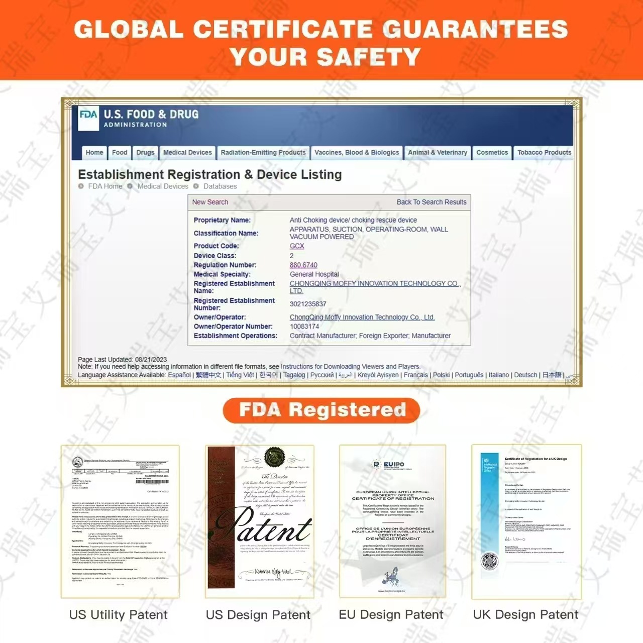 Сертификат регистрации продукта Chongqing medical device registration number: 20242140048
