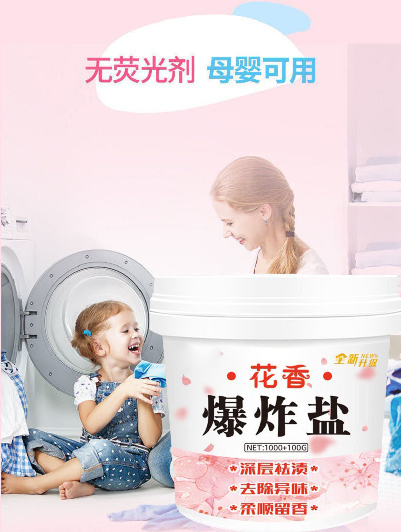 Объяснить Explosive salt for laundry, strong stain removal, yellowing and whitening, color bleaching agent, clothes decontamination, bleaching artifact, factory wholesale, stain and yellowing removal, floral explosive salt, free shipping