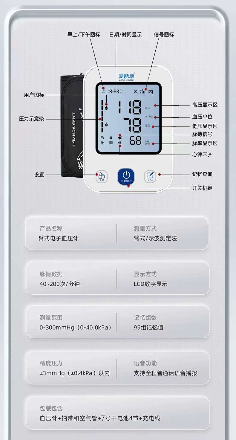 Электронный тонометр для верхней части руки Ainengkang домашний точный прибор для измерения давления