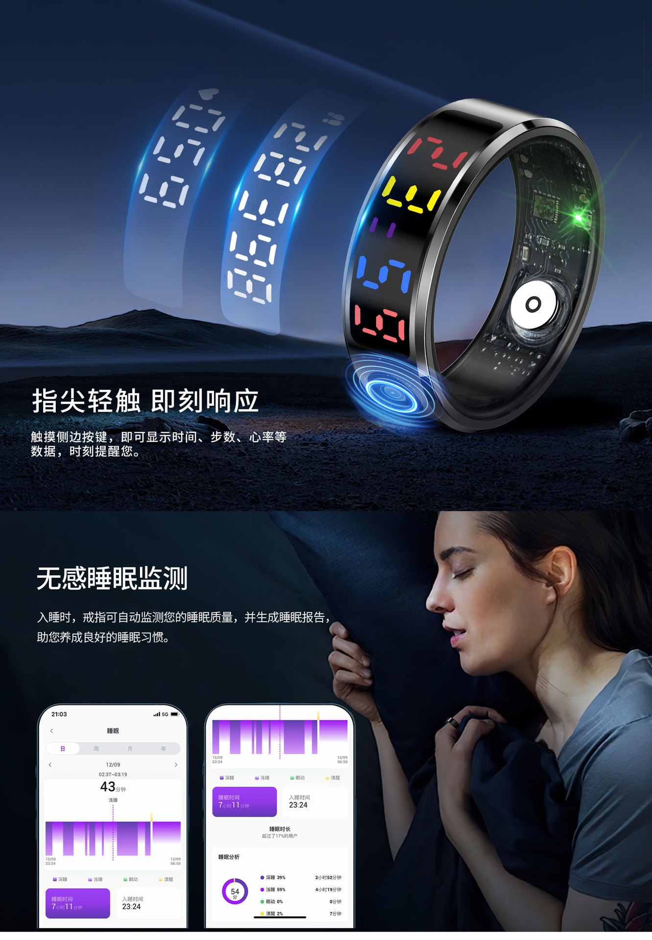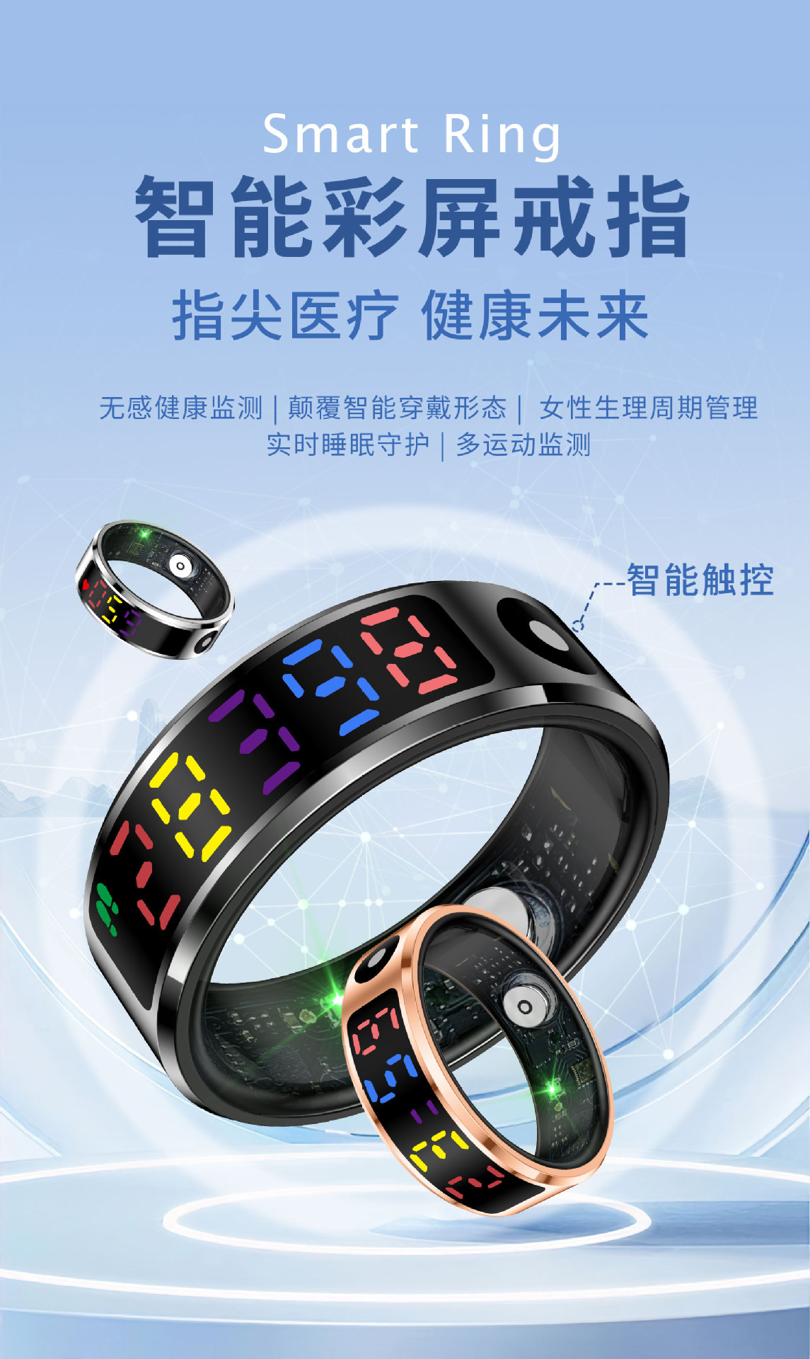 Кросс-бордовый новый умный кольцо R12 мониторинг сна, сердечного ритма, уровня кислорода в крови, Bluetooth кольцо с цветным экраном