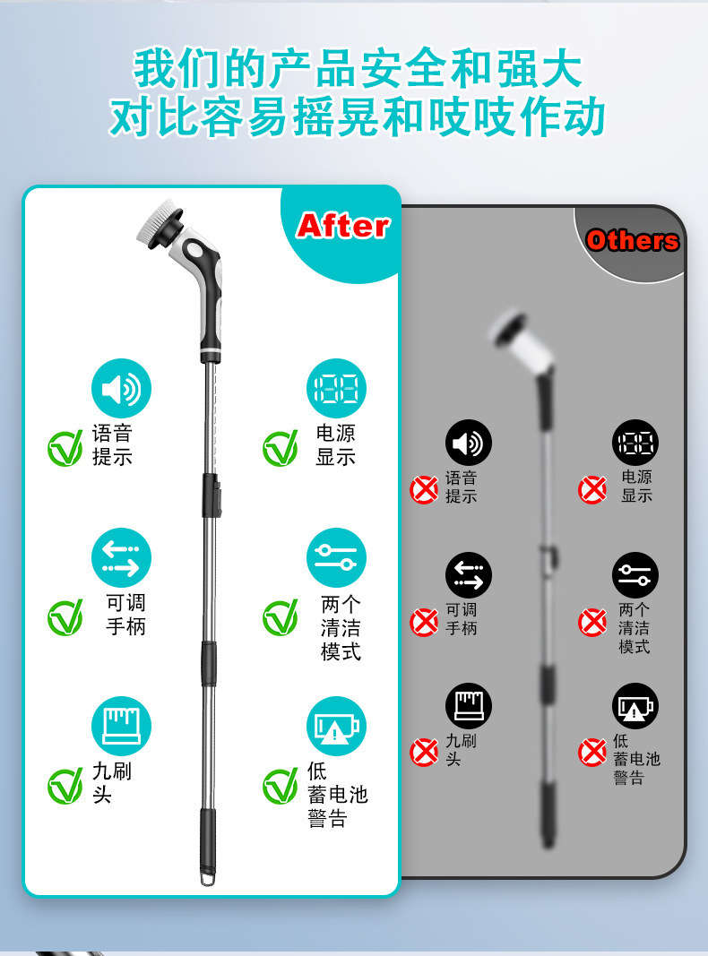 Кросс-бодерная многофункциональная электрическая чистящая щетка с голосовым управлением, беспроводная, ручная щетка с автоматическим вращением и телескопической ручкой