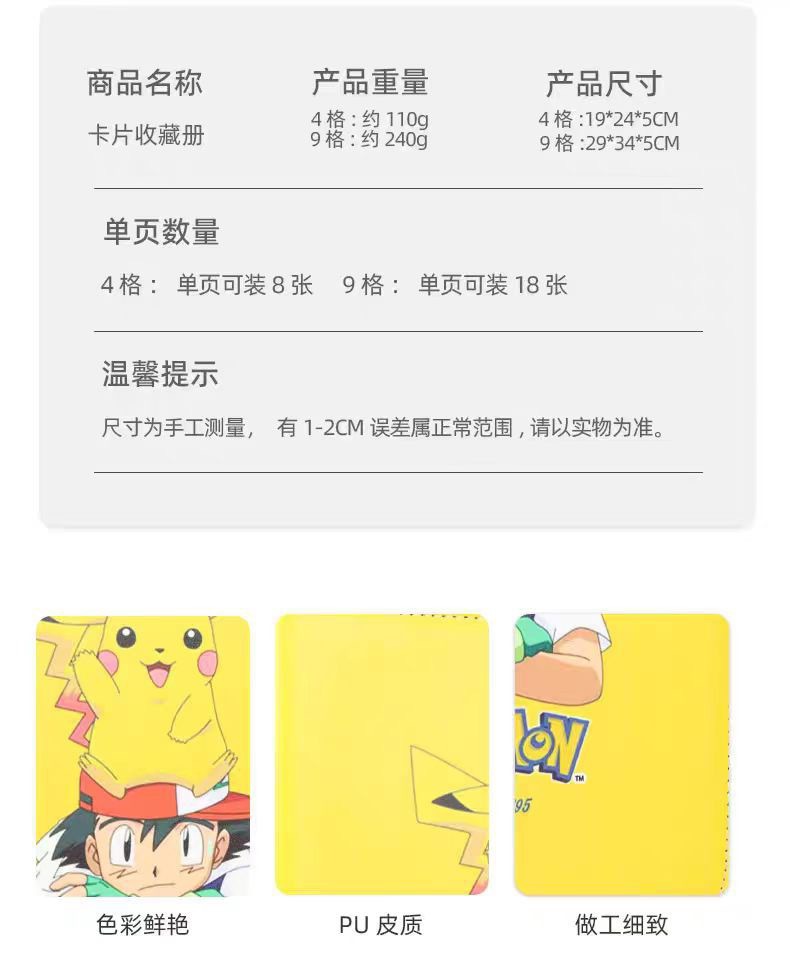 Горячая продажа альбома для карточек Pokémon, 9 и 4 кармана, сумка для хранения карточек