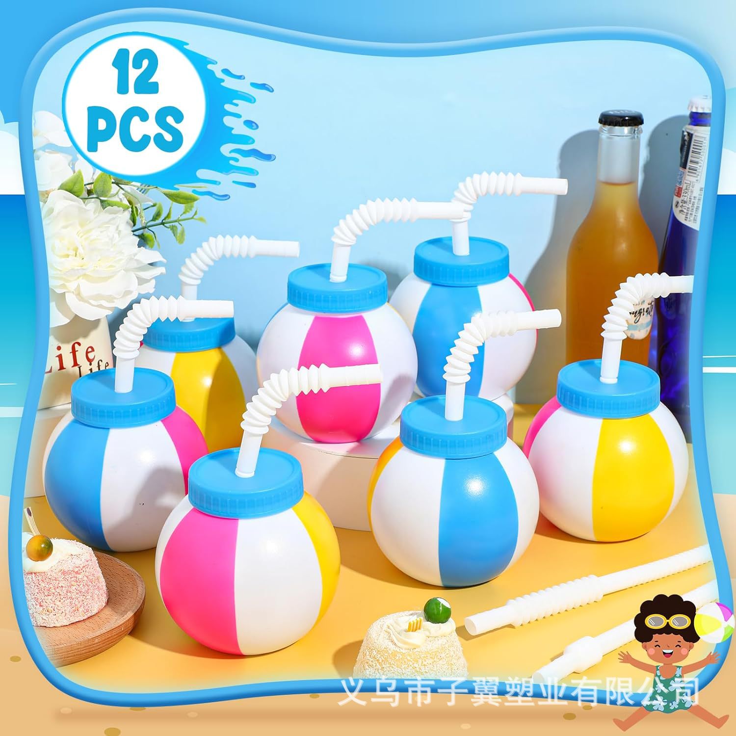 Кастомизированная круглая соломка многоцветная, пластиковая кружка для сока и молочного чая