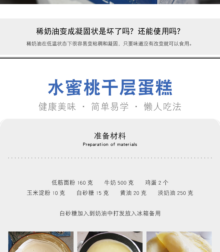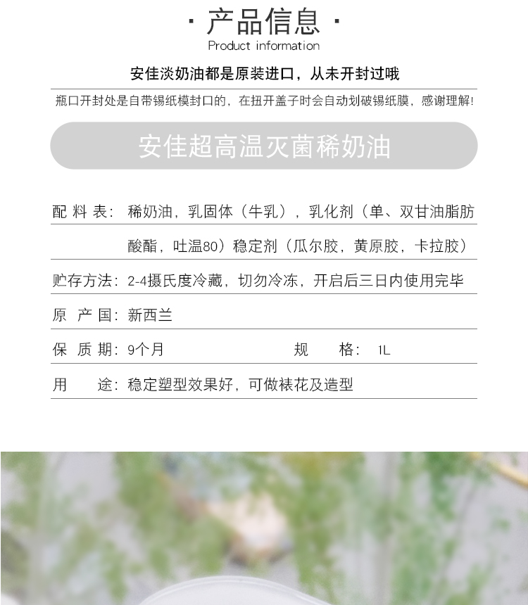 Крем Anjia 1L, животный крем для выпечки десертов и декорирования домашних тортов