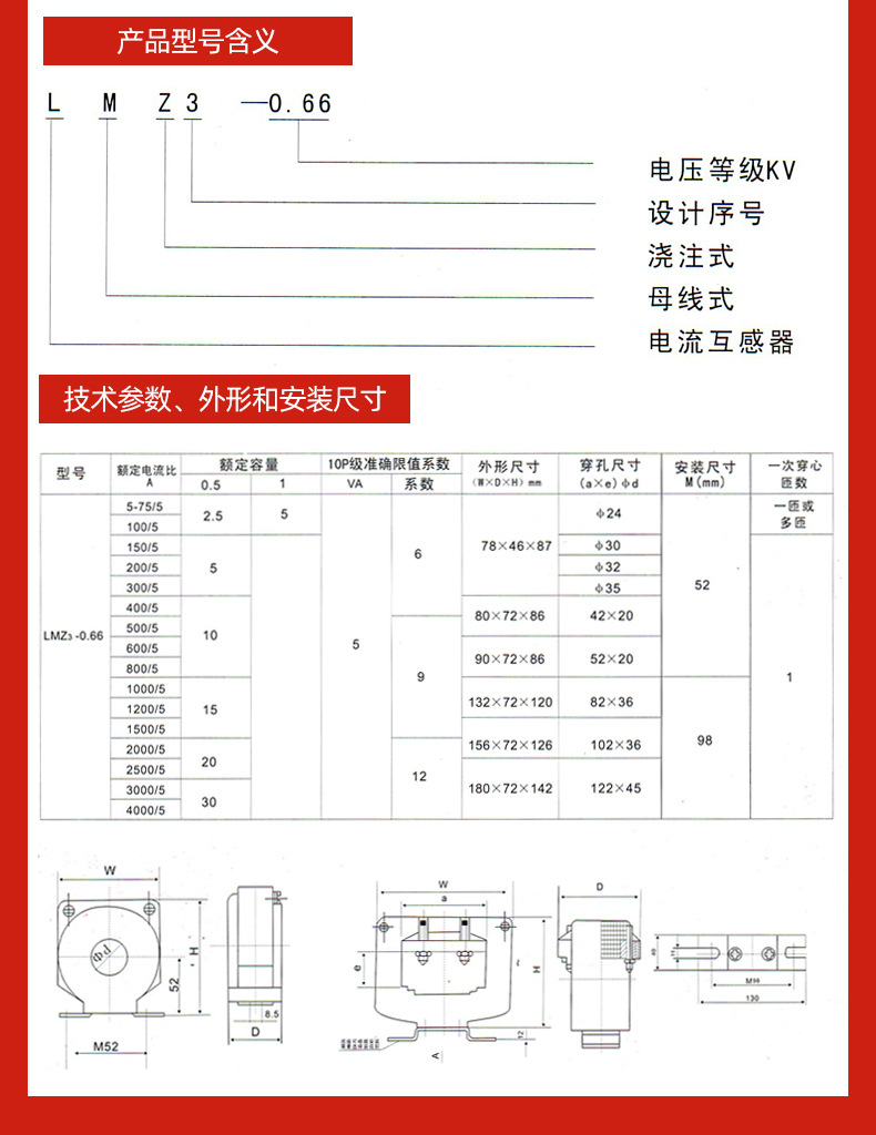 Токовый трансформатор Suzhou Tongyu Lmz3D-0.66 серии с высокой точностью для настенного монтажа