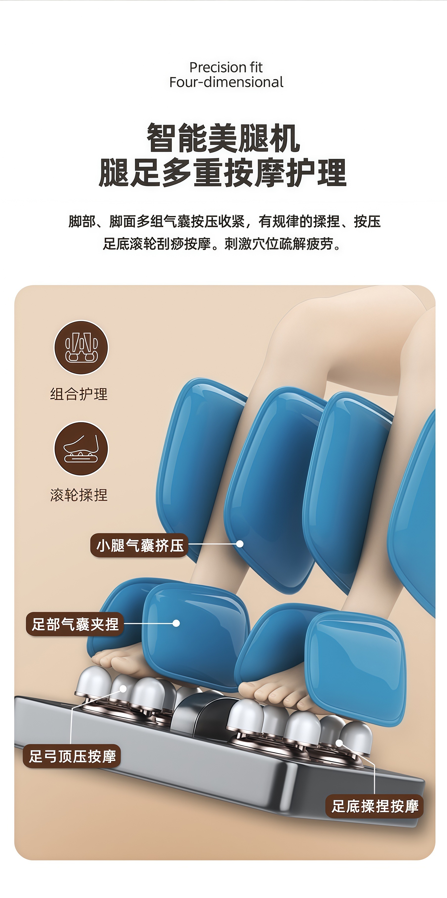 Принцип массажа Vibration, Hot compress, Air pressure, Air bag, Massage, Knead