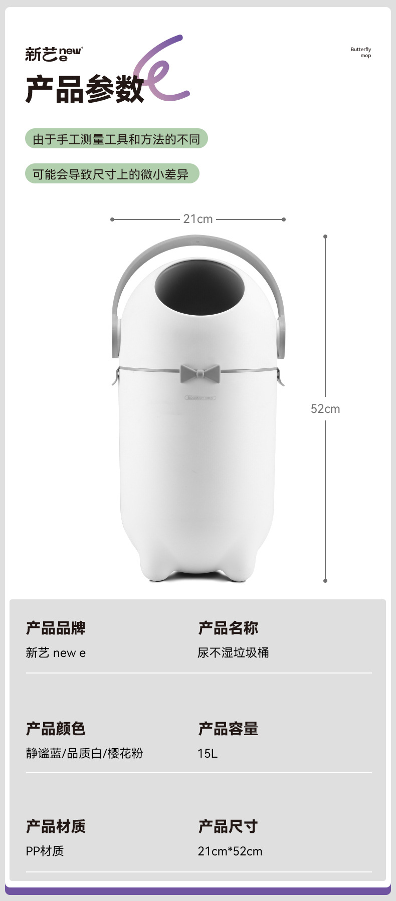 Мусорное ведро для подгузников, большая емкость, круглое, бесшумное открытие и закрытие, механическая ручка