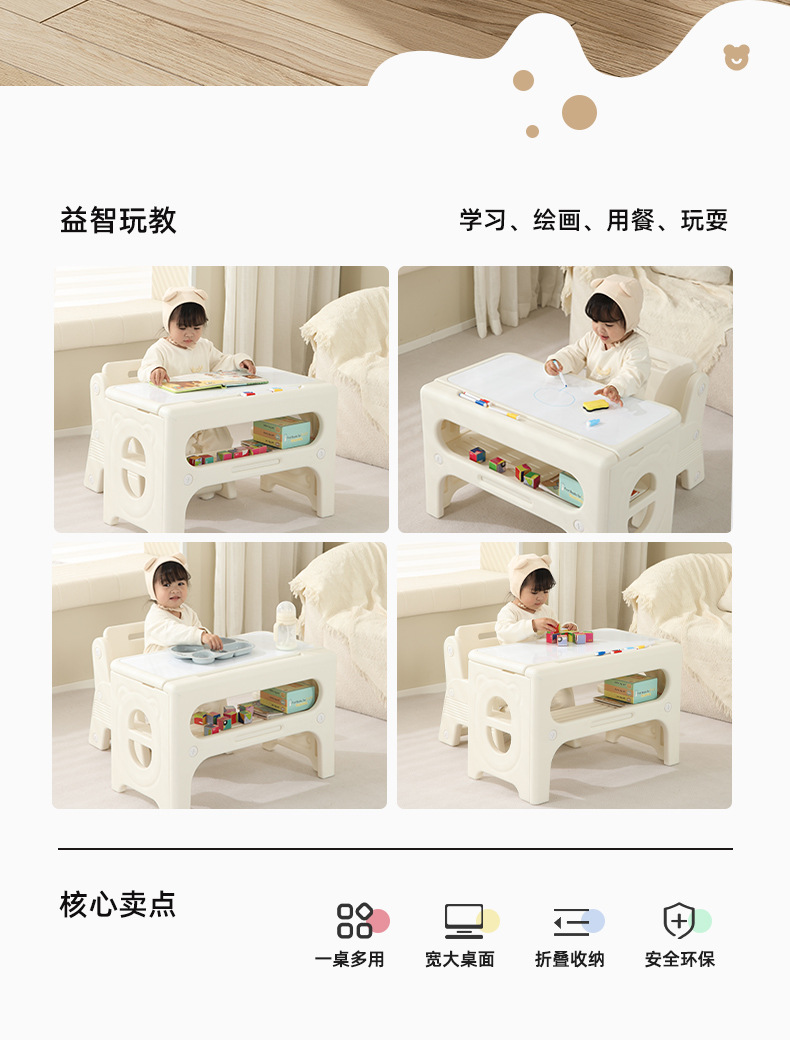 Детский стол для малышей 1-6 лет, складной учебный стол и стул, домашний стол, игрушечный обеденный стол для раннего обучения