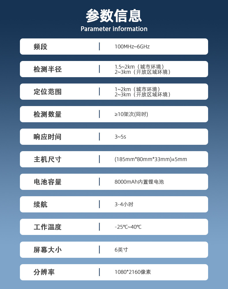 Индивидуальное портативное оборудование для обнаружения и позиционирования дронов, 3 км, полное частотное позиционирование, защита пилота, оборудование для обнаружения