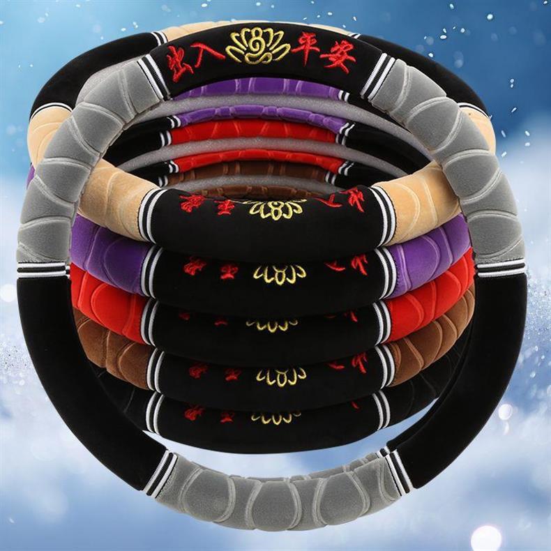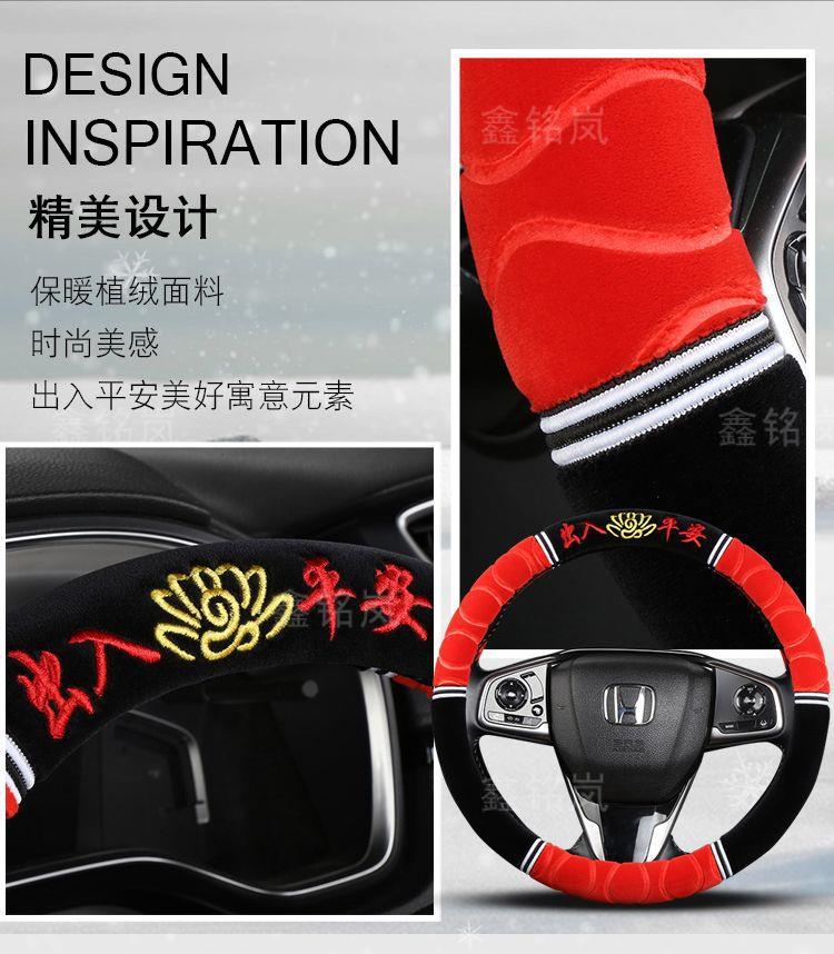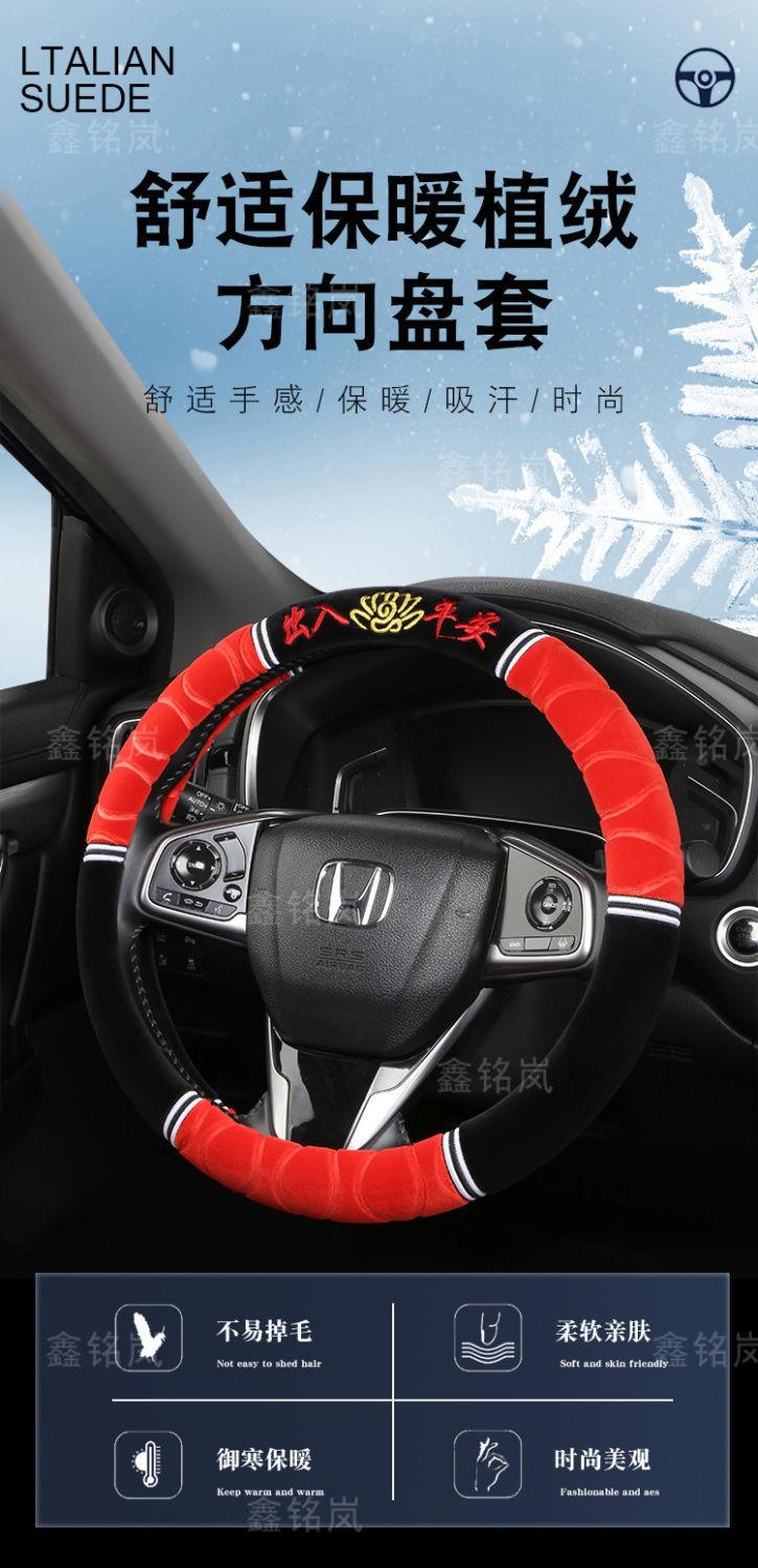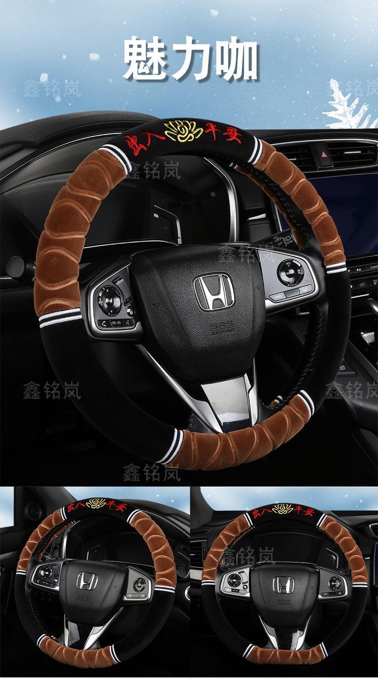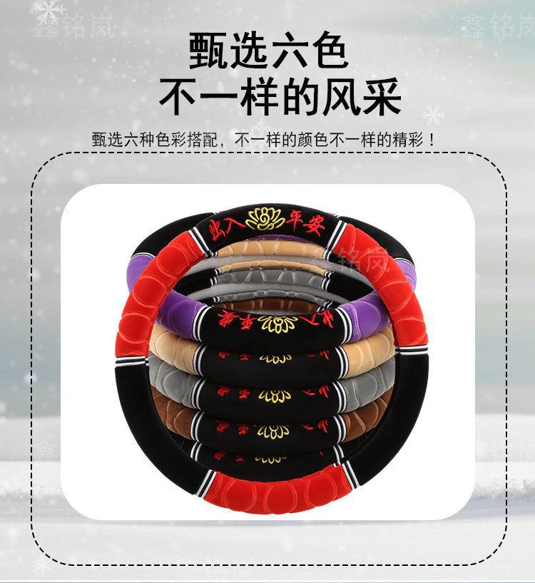 Новое зимнее короткое плюшевое покрытие для руля универсальное нескользящее теплое безворсовое с вышивкой