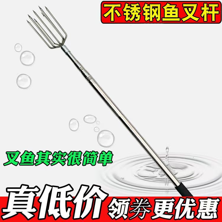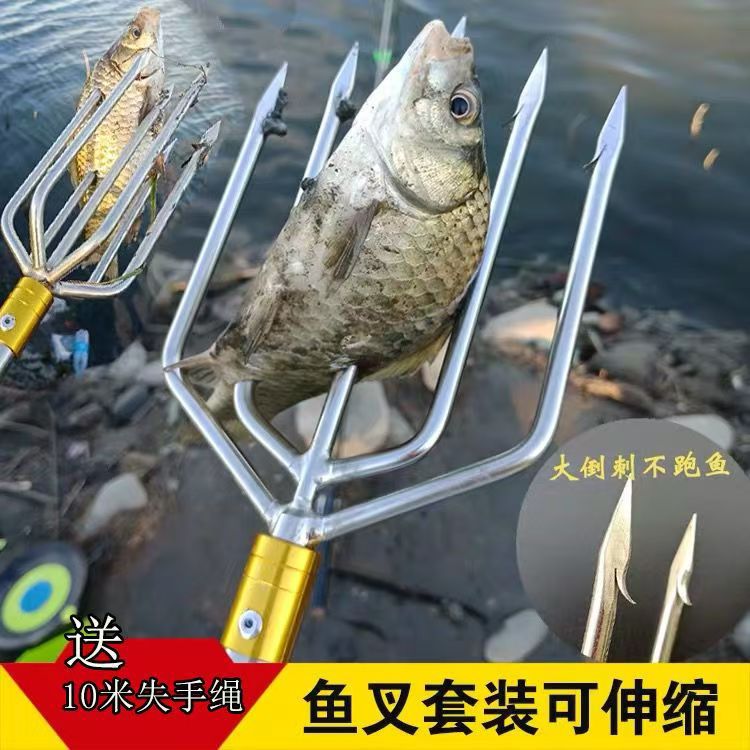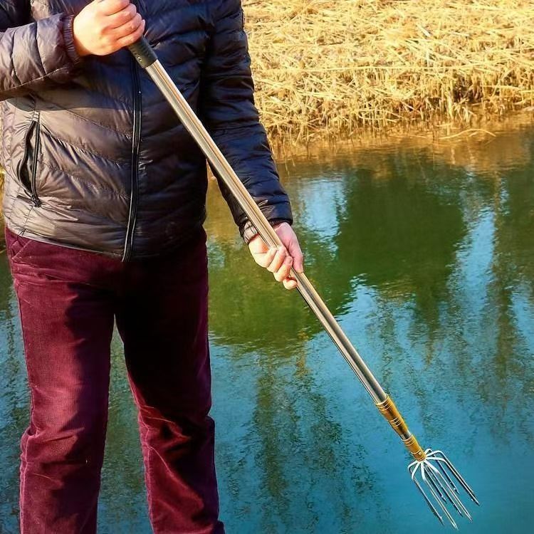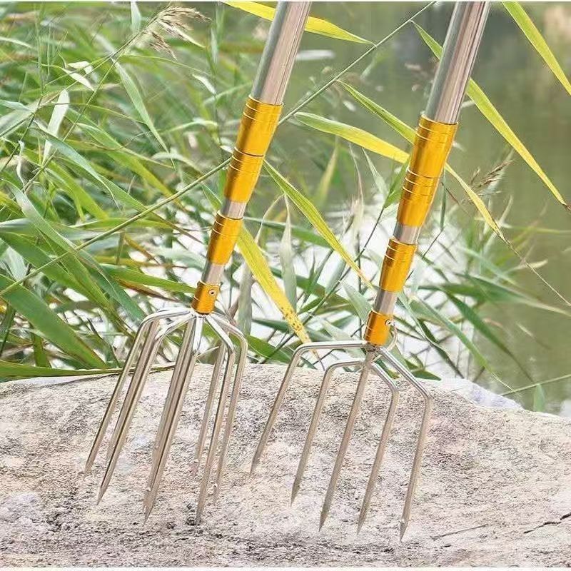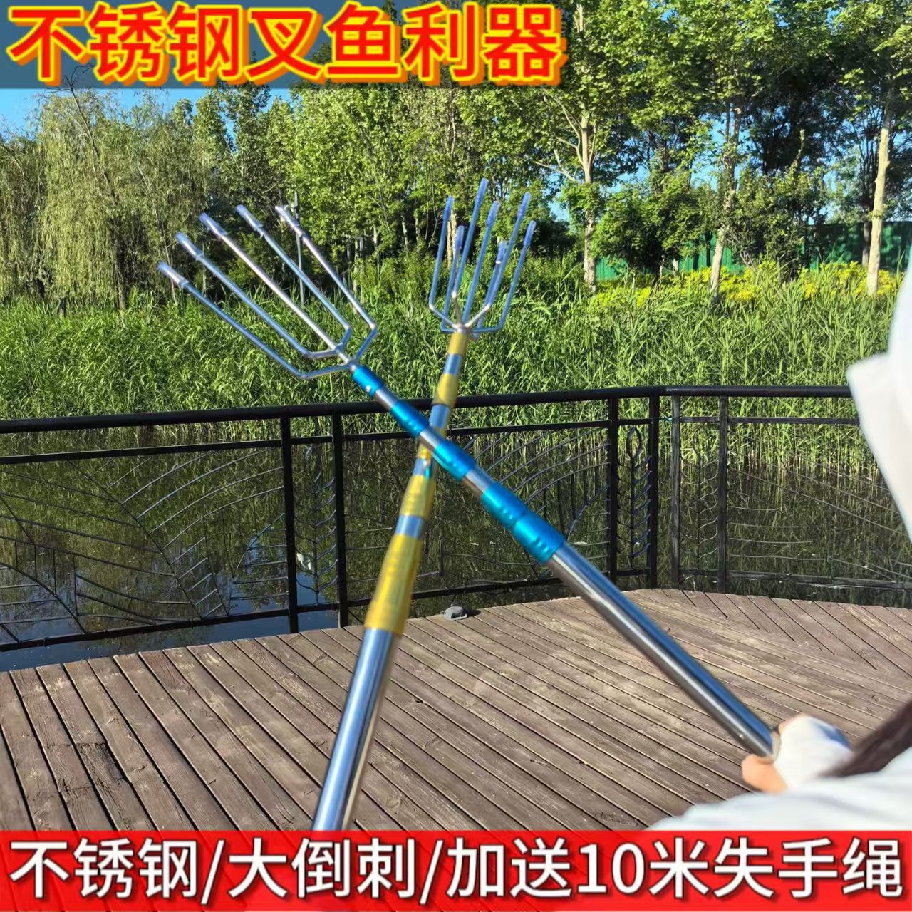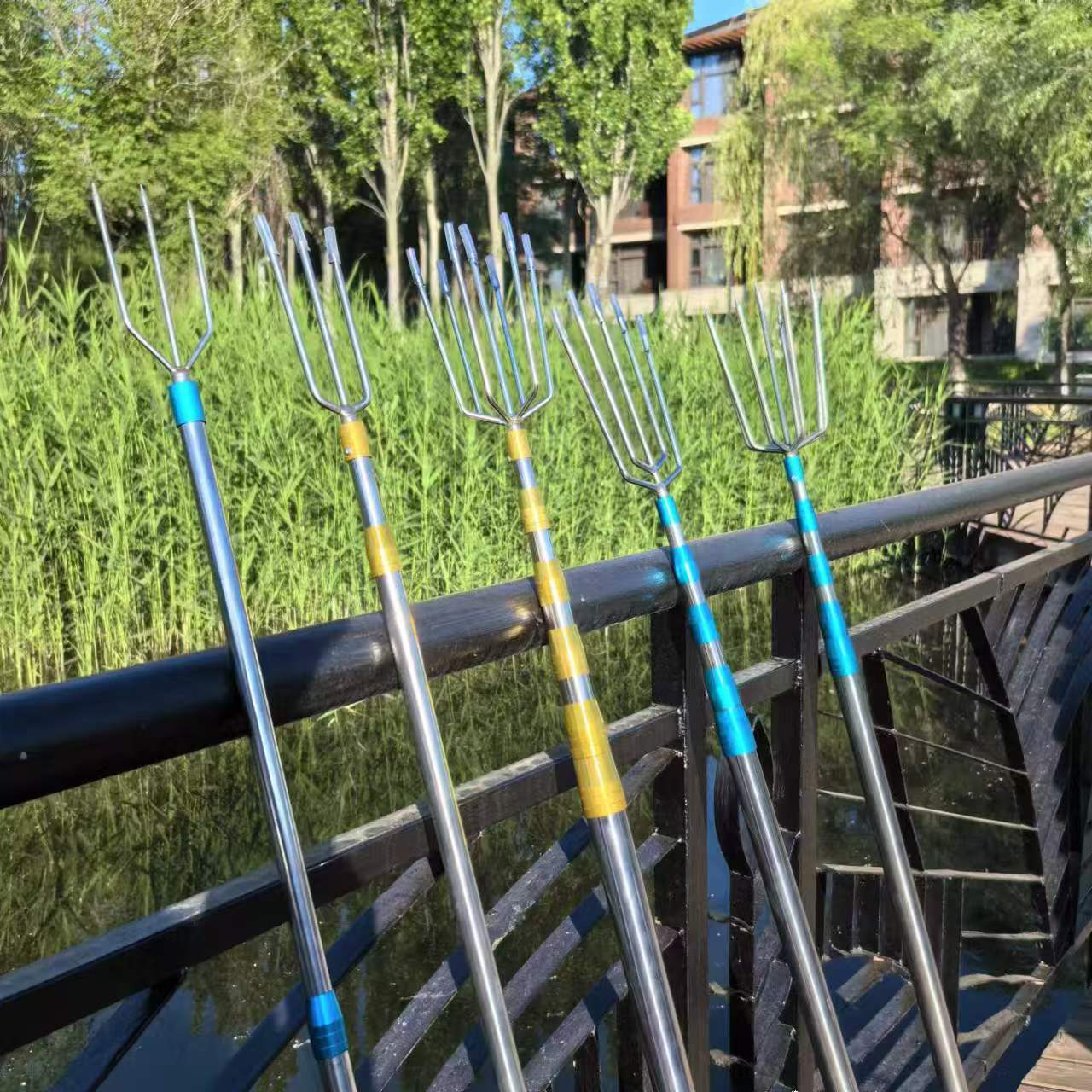 Нержавеющая сталь гарпун с выдвижной позиционирующей трубкой, вилка для ловли рыбы, многофункциональный гарпун с большими зазубринами