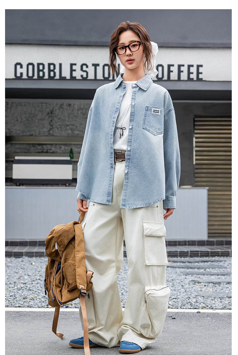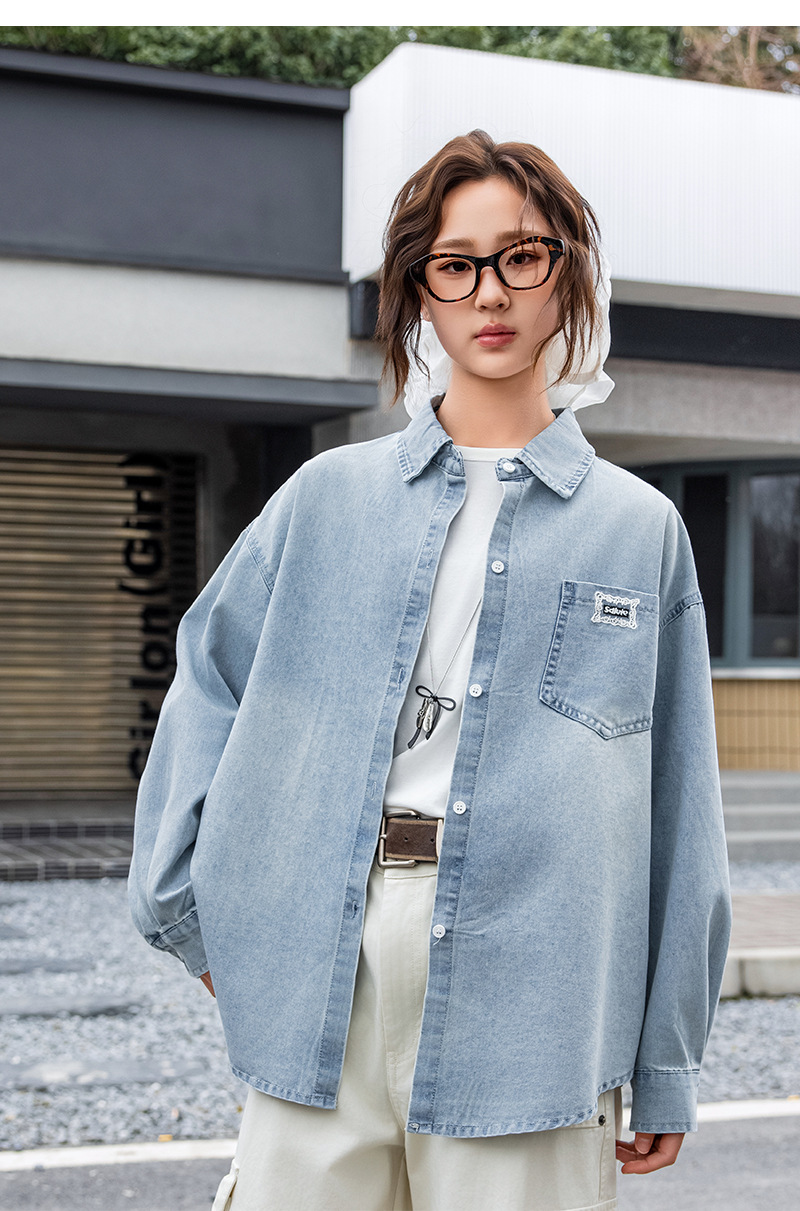 Джинсовая рубашка для учеников средней школы, новая верхняя одежда весна-осень 2025, повседневная рубашка для средних и больших детей