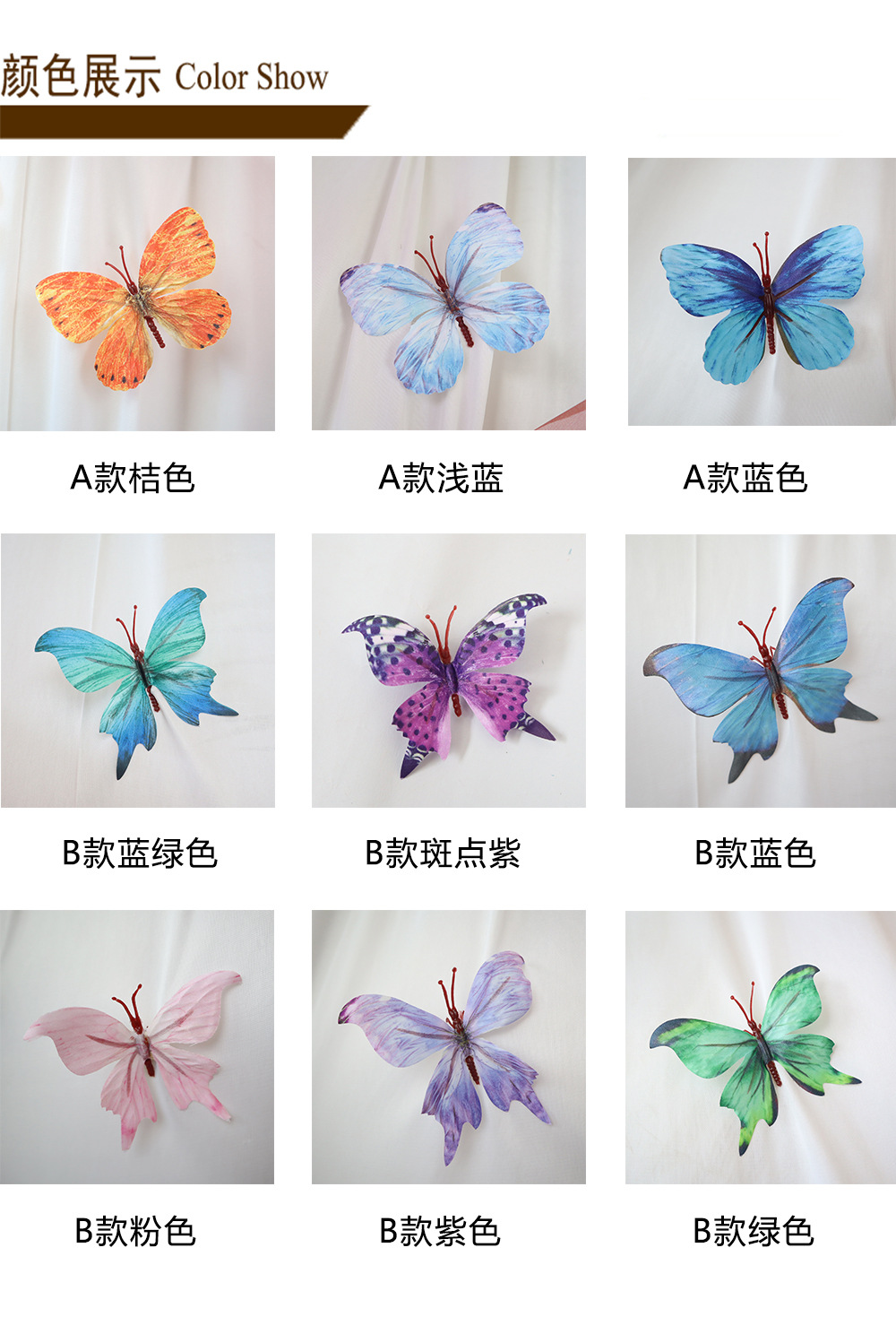 迷你版仿真蝴蝶彩色蝴蝶墙壁装饰婚礼路引花卉装扮绢布假蝴蝶批发