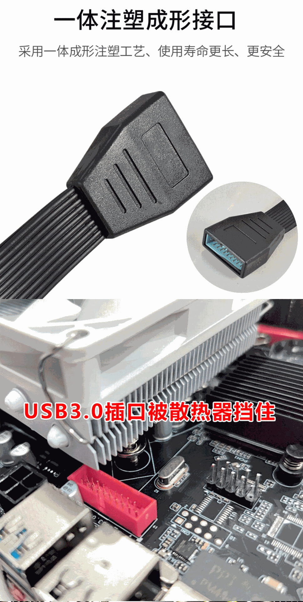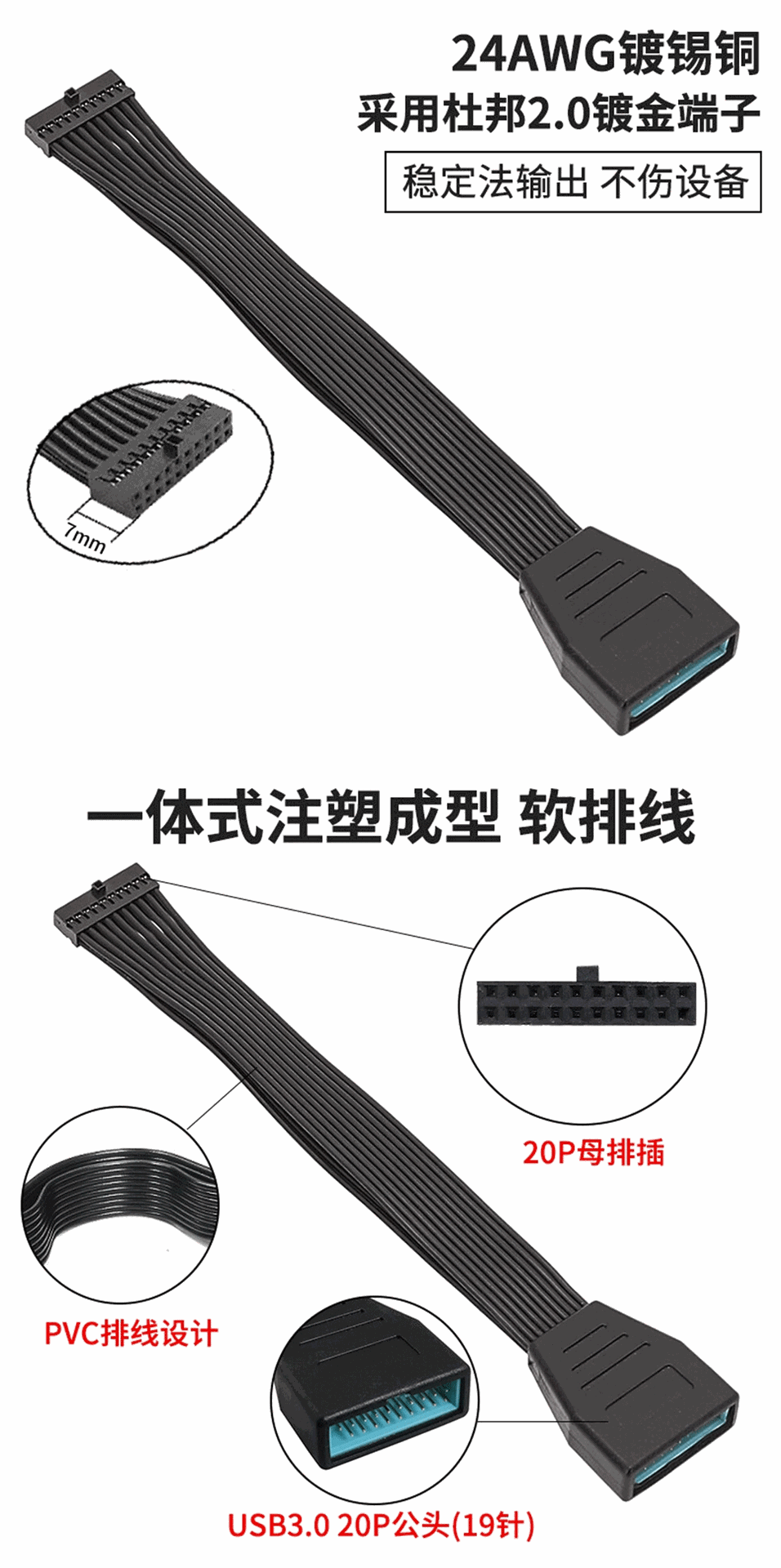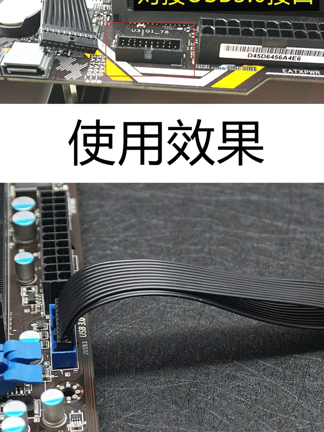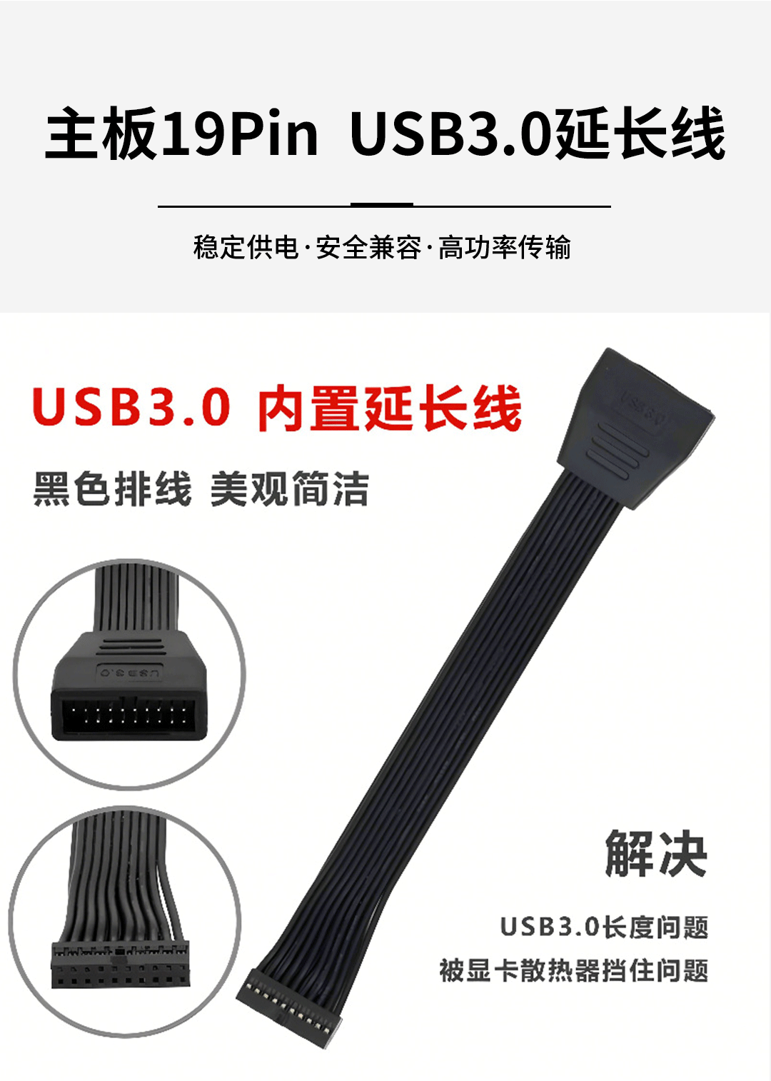 Удлинитель USB3.0, гибкий кабель 19pin 15см черный