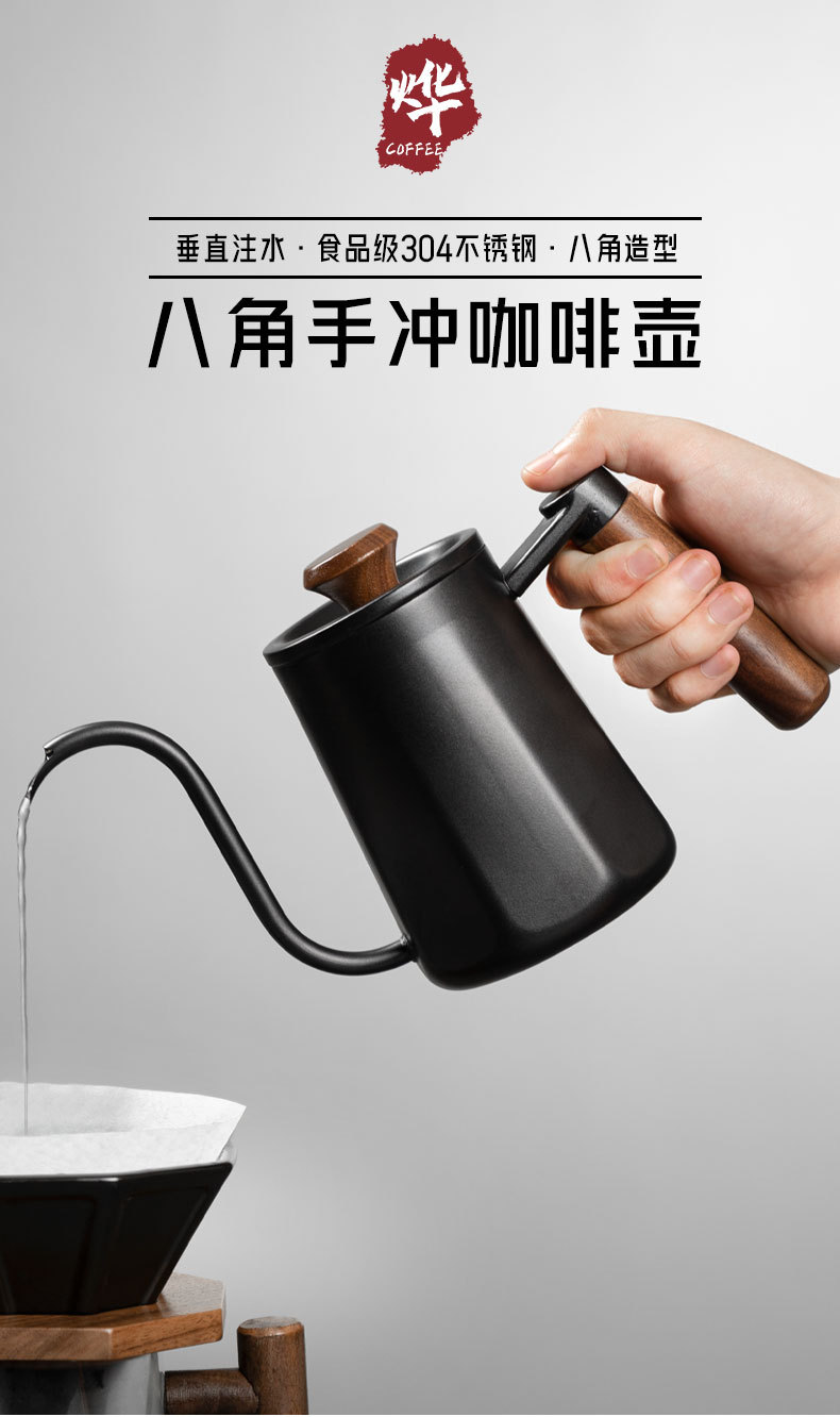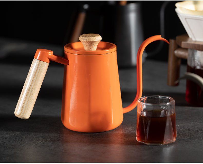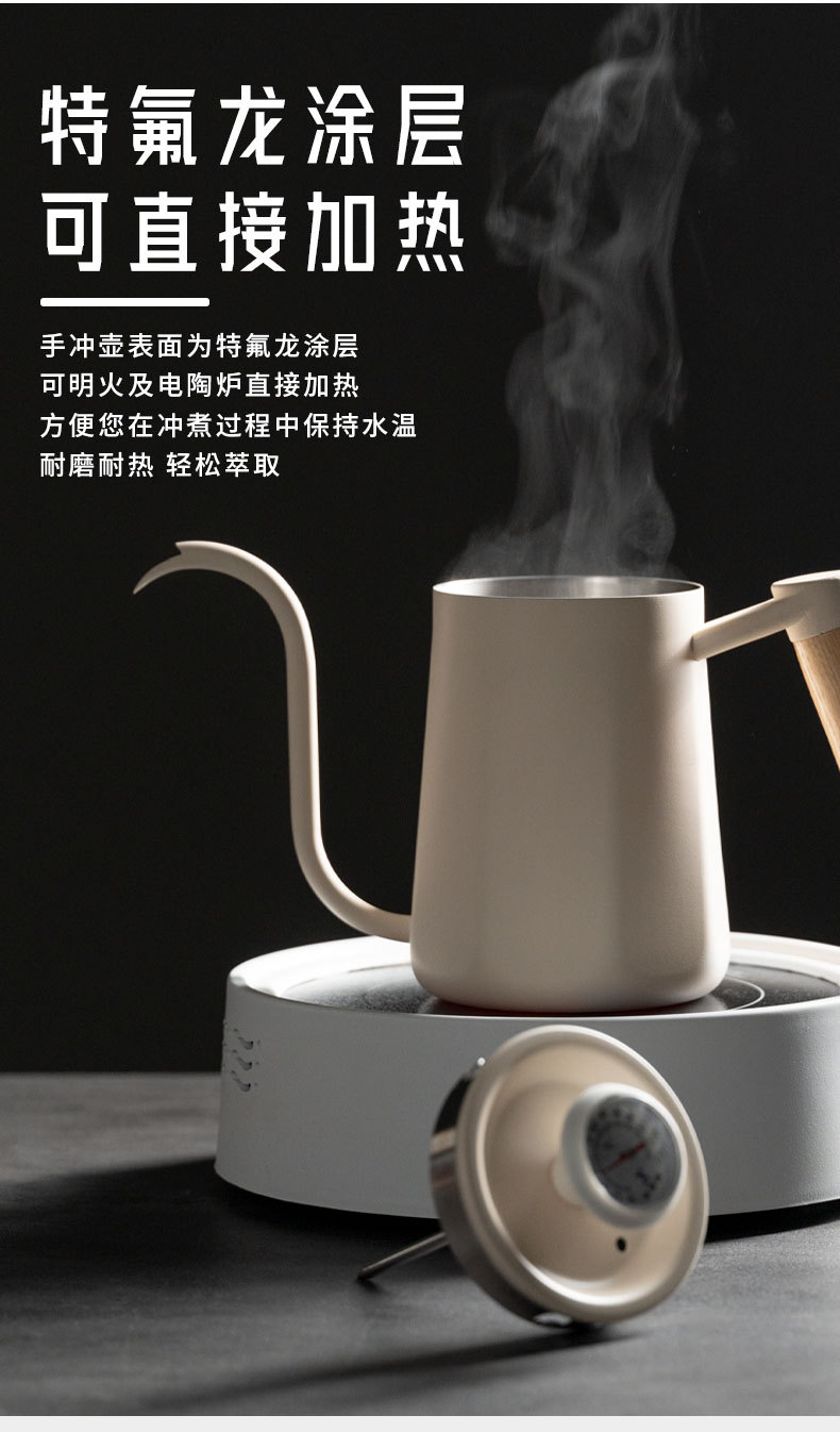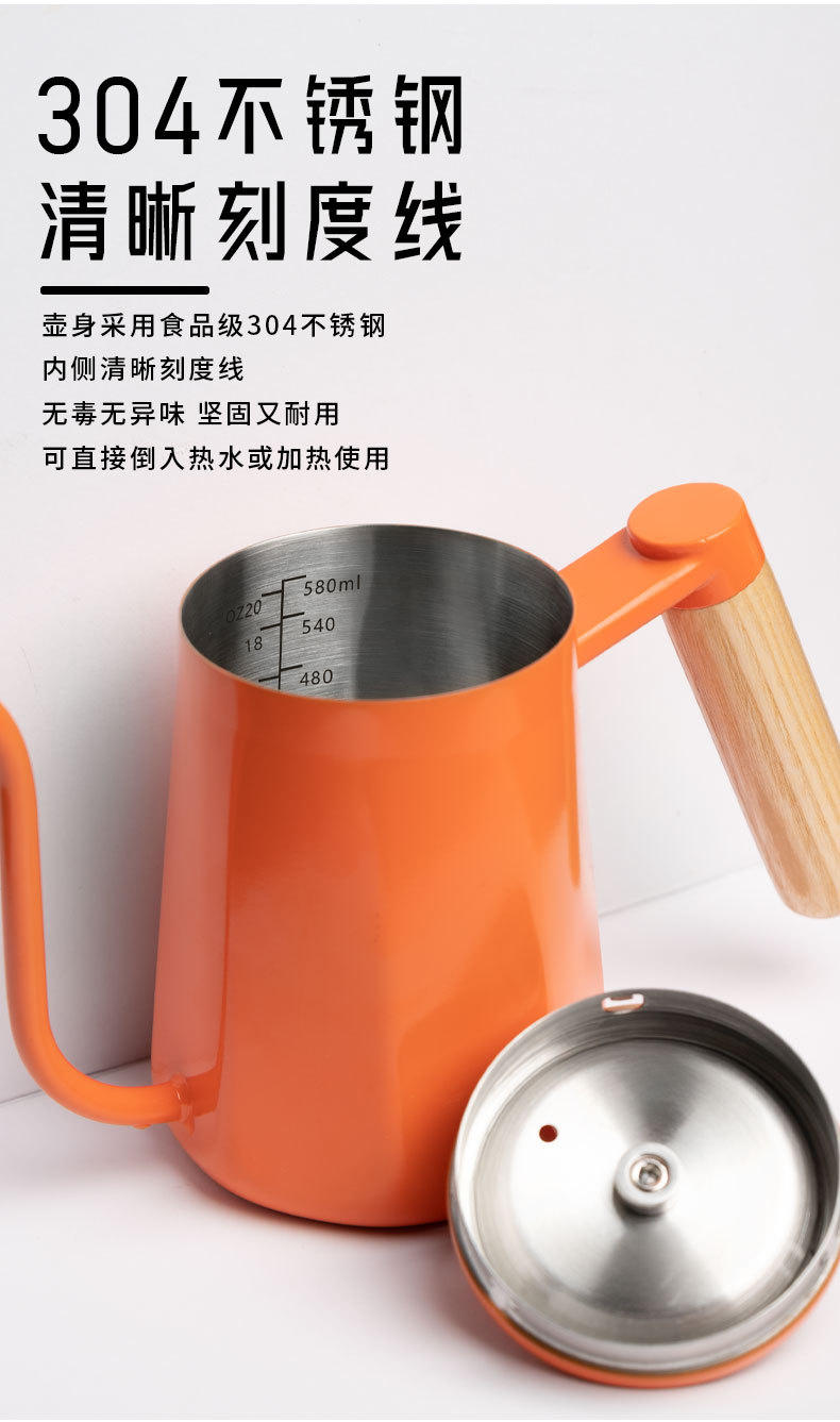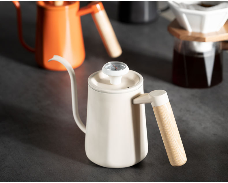 Бесплатная доставка ручной кофейной кастрюли из нержавеющей стали 304, с длинным и тонким носиком, с термометром, противоожоговая ручка