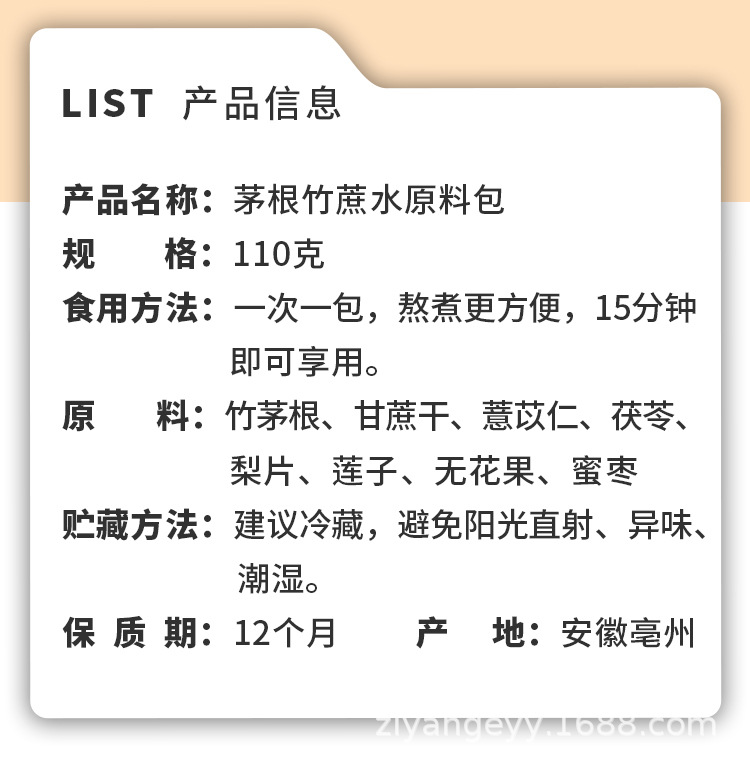 Основные сырьевые материалы Bamboo grass root, dried sugar cane, coix seed, poria, pear slices, lotus seeds, figs, candied dates