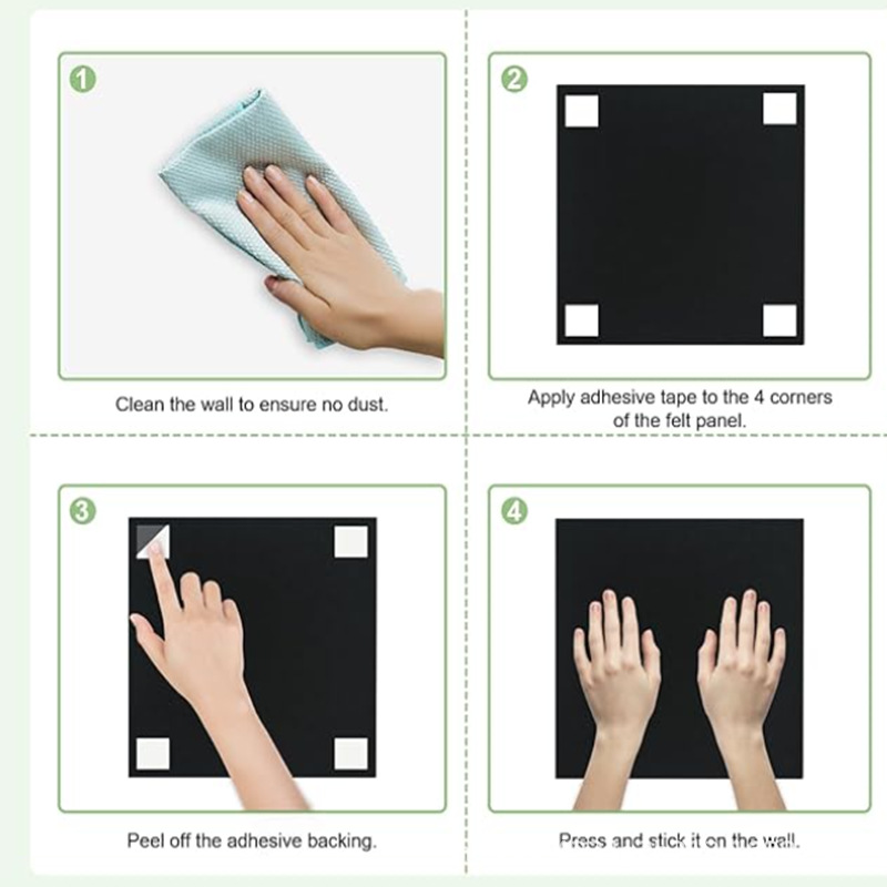 用途广泛:适合家庭、办公室或学校使用。 非常适合装饰,隔音,整理照片、笔记或提醒。 轻松定制,打造您自己的独特毛毡展示板墙
