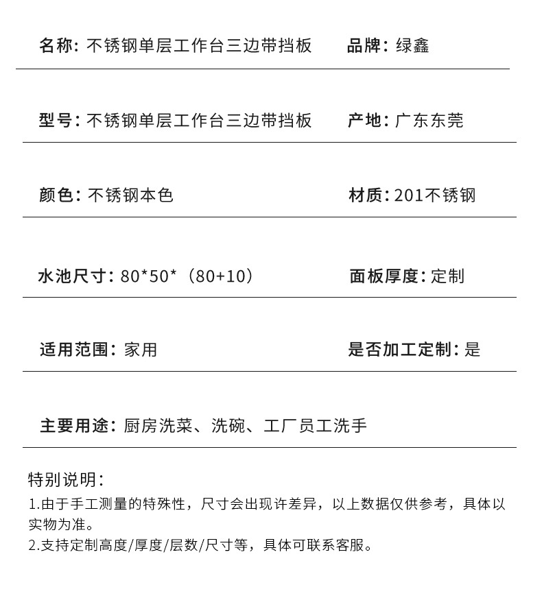 Индивидуальная обработка стола из нержавеющей стали, кухонный специальный трехсторонний экран, однослойная разделочная доска, стол для работы из нержавеющей стали