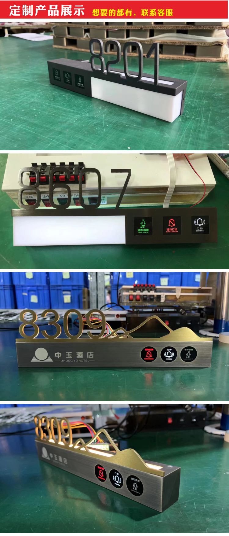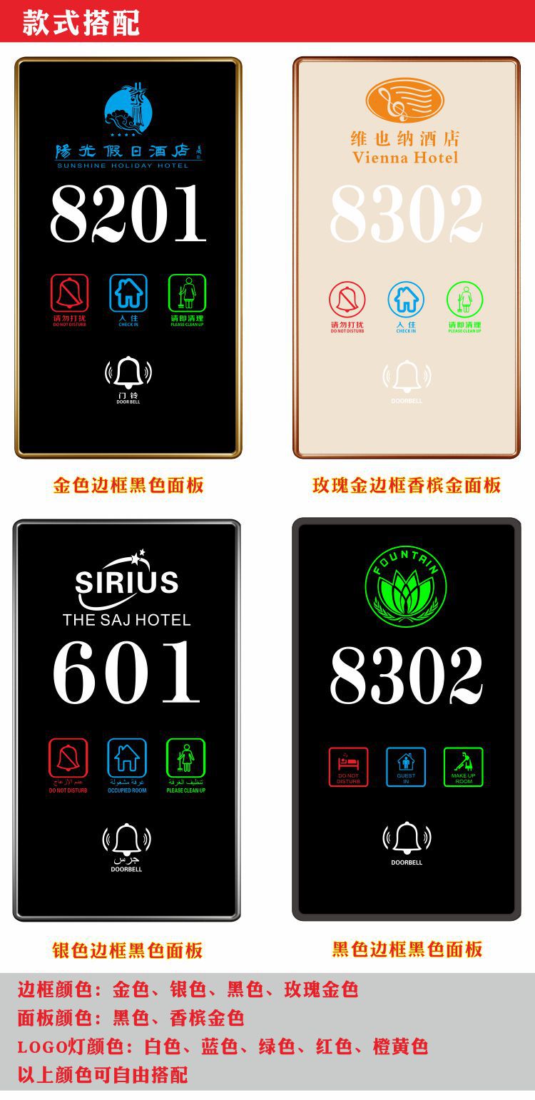 Материал Personalized hotel digital door sign, hotel digital door display, stainless steel hotel room touch doorbell, please wait, please clean up immediately,