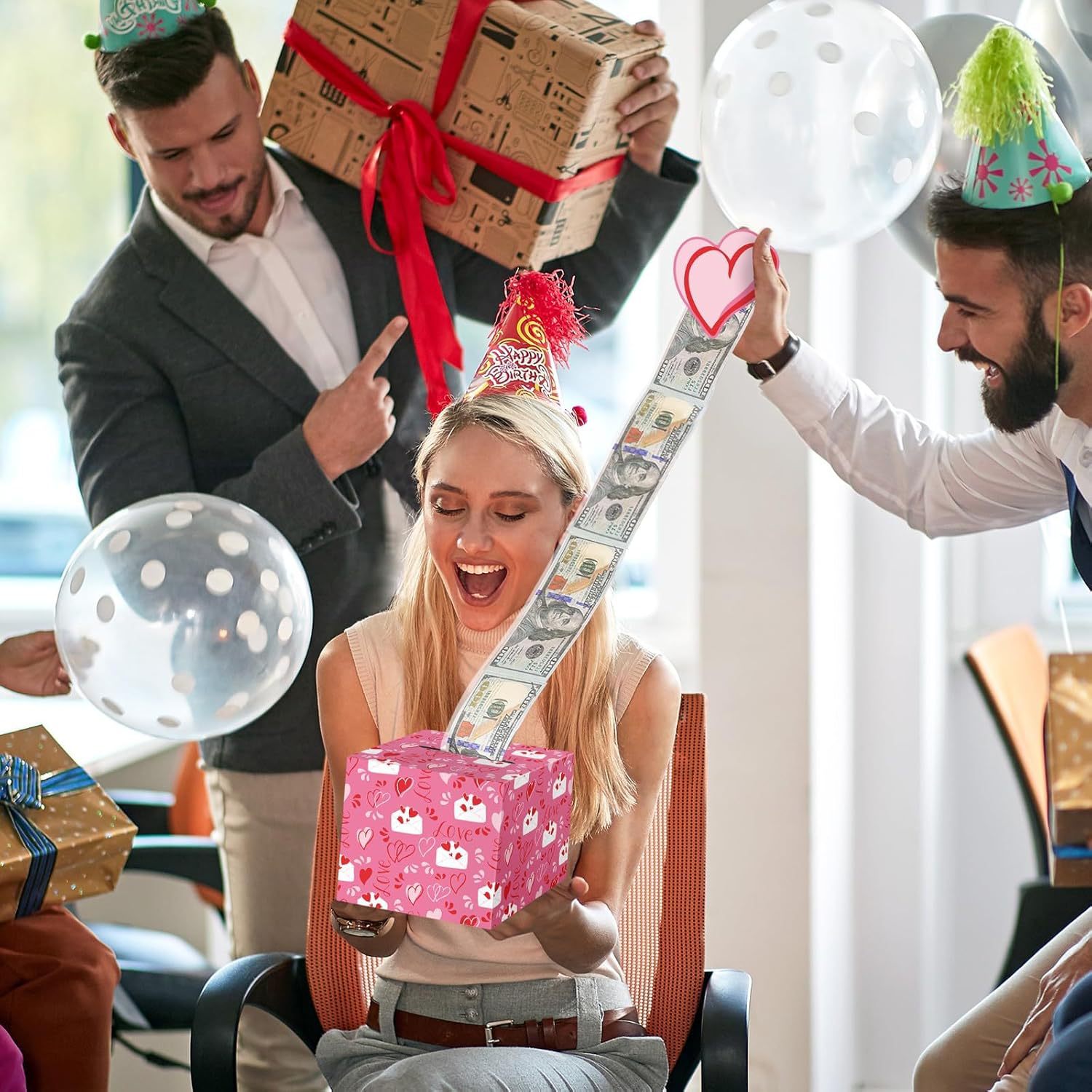 Копилка на День святого Валентина с розовой денежной сумкой, денежный подарок с поздравительной открыткой, коробка-сюрприз на День святого Валентина