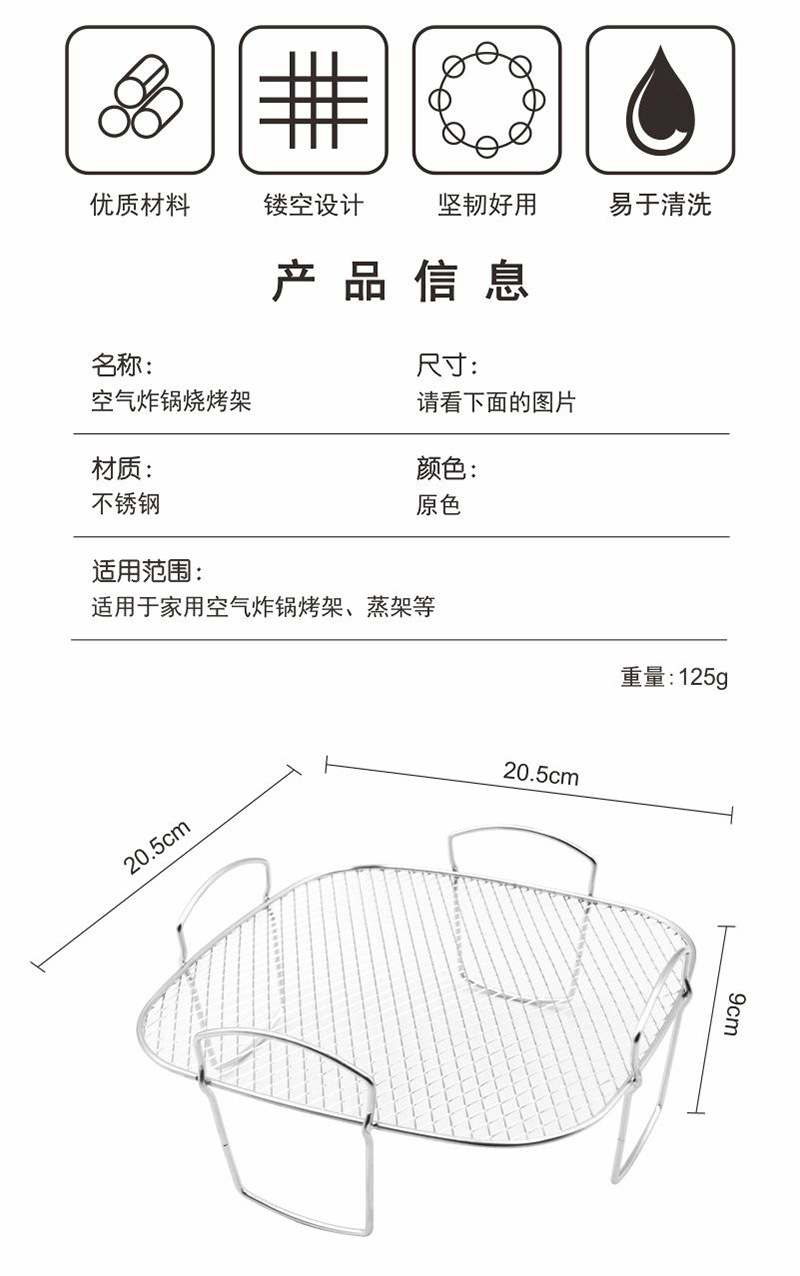 Аксессуары для гриля из нержавеющей стали для фритюрницы, решетка для пара, решетка для хлеба, квадратная решетка для гриля
