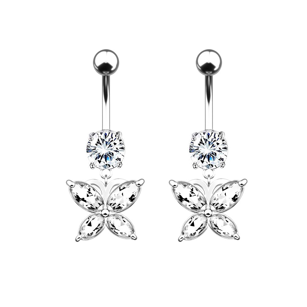 Классическое кольцо для пупка с цирконами в виде бабочки, креативное украшение для пирсинга