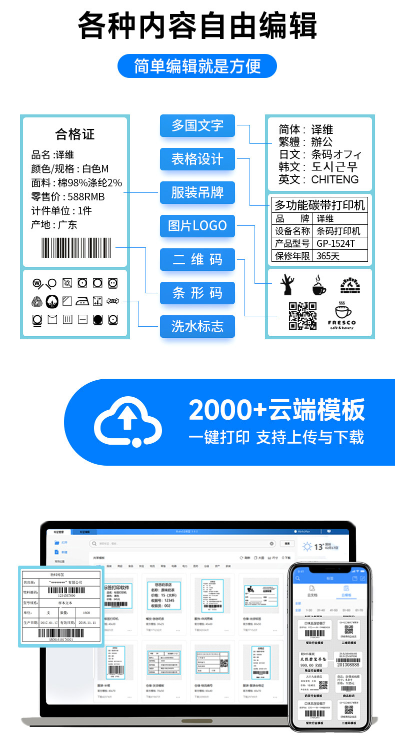 我们配备强大技术服务团队,提供设备、耗材、培训、售后、解决方案一条龙服务。支持标签定制印刷、碳带定制、设备定制等,支持上门交流提货。