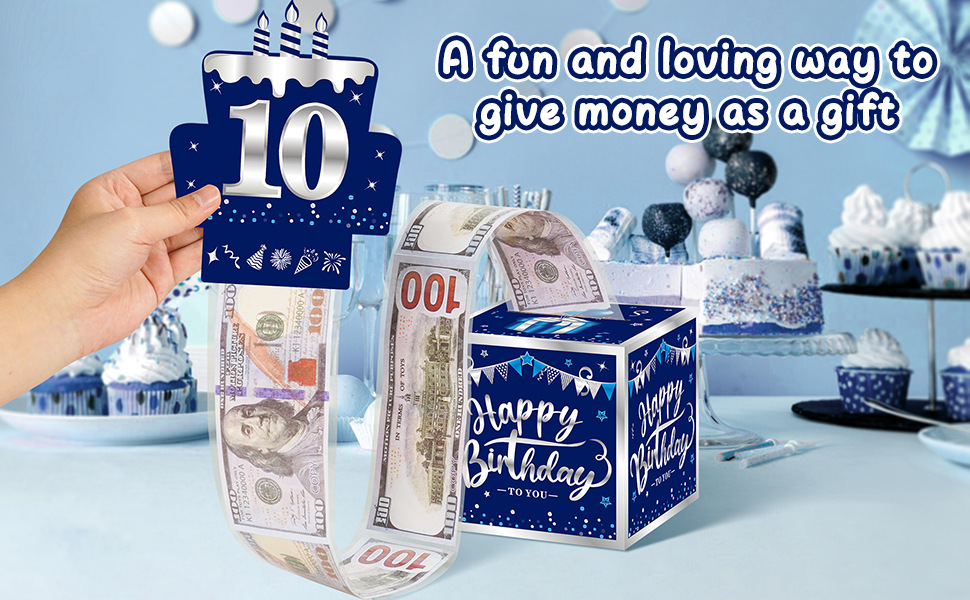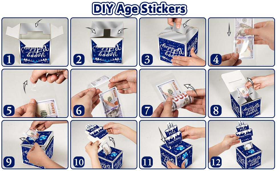 Копилка на день рождения с DIY наклейками, подходит для любой возрастной группы, синяя серебряная коробка-сюрприз