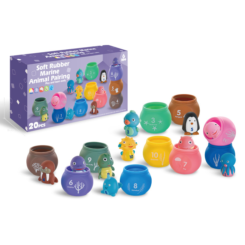 Кросс-бордерная игрушка для раннего детского образования, мягкие резиновые игрушки для сопоставления животных, цифровые игрушки для сопоставления, образовательные перчаточные куклы