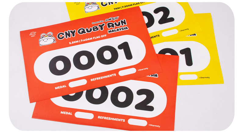 支持姓名、编号、LOGO定制,专属您的赛事标识。