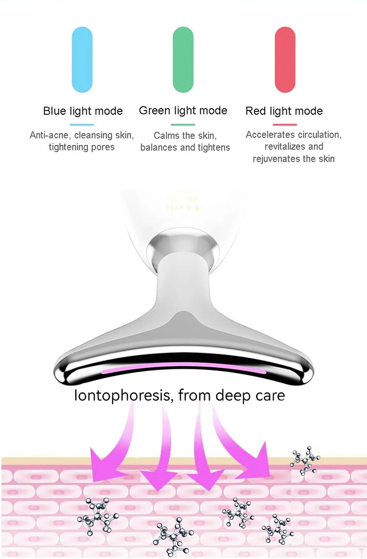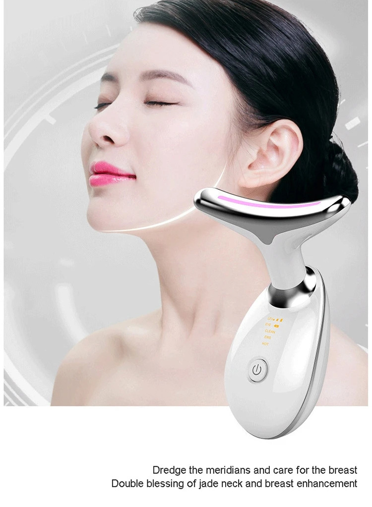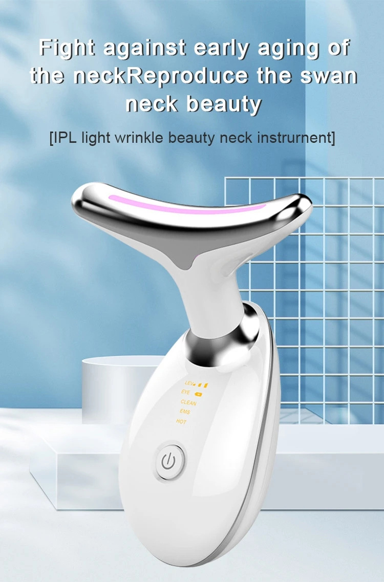 Кросс-бордерный прибор для красоты шеи массажный прибор для морщин на шее 3-цветный вводный прибор вибрирующий горячий компресс для красоты шеи маленький дельфин вводный прибор для шеи