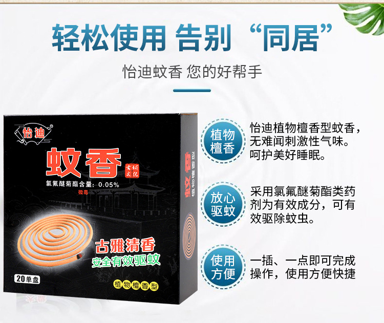 Цвет Yidi sandalwood mosquito coil--1 box of 20 discs (black)