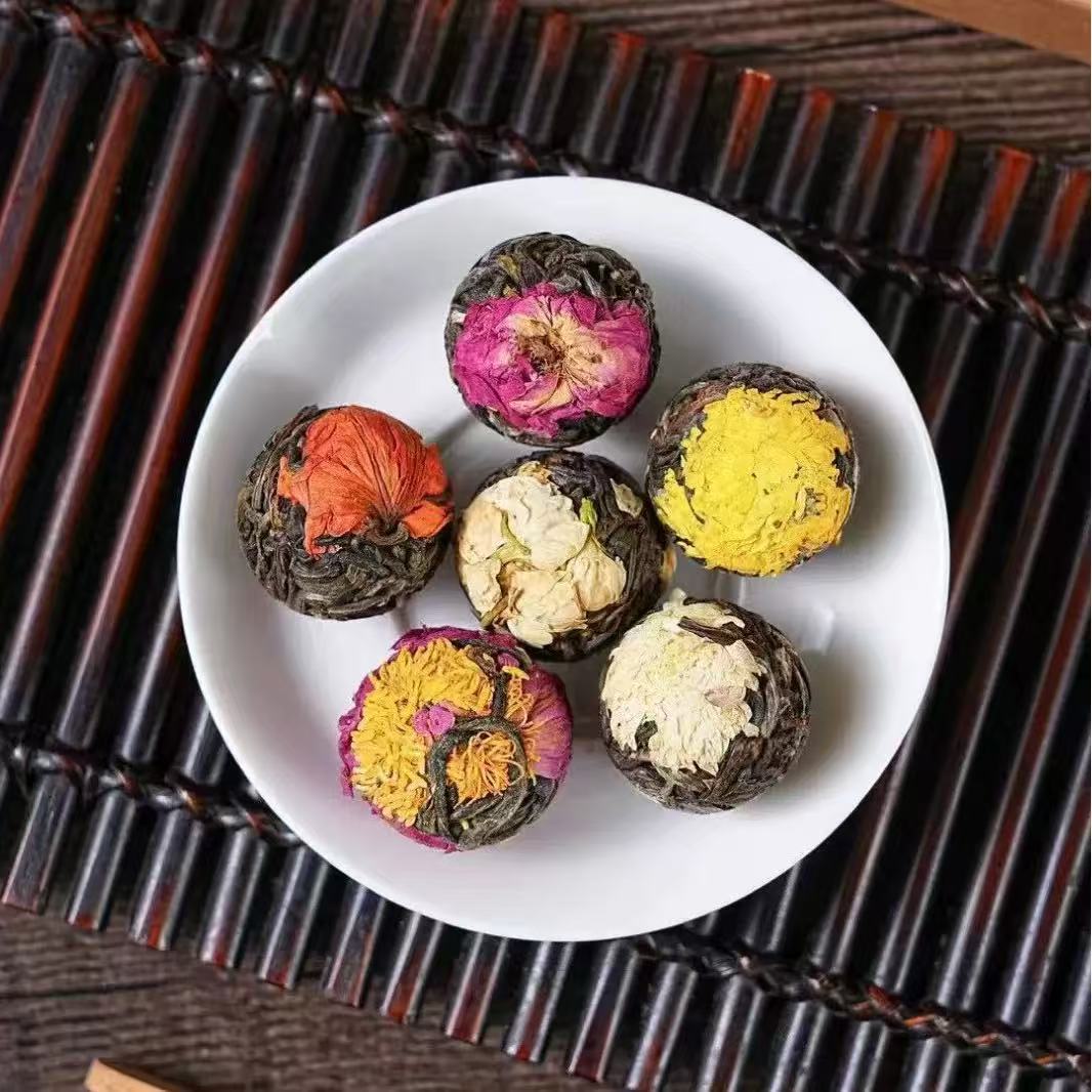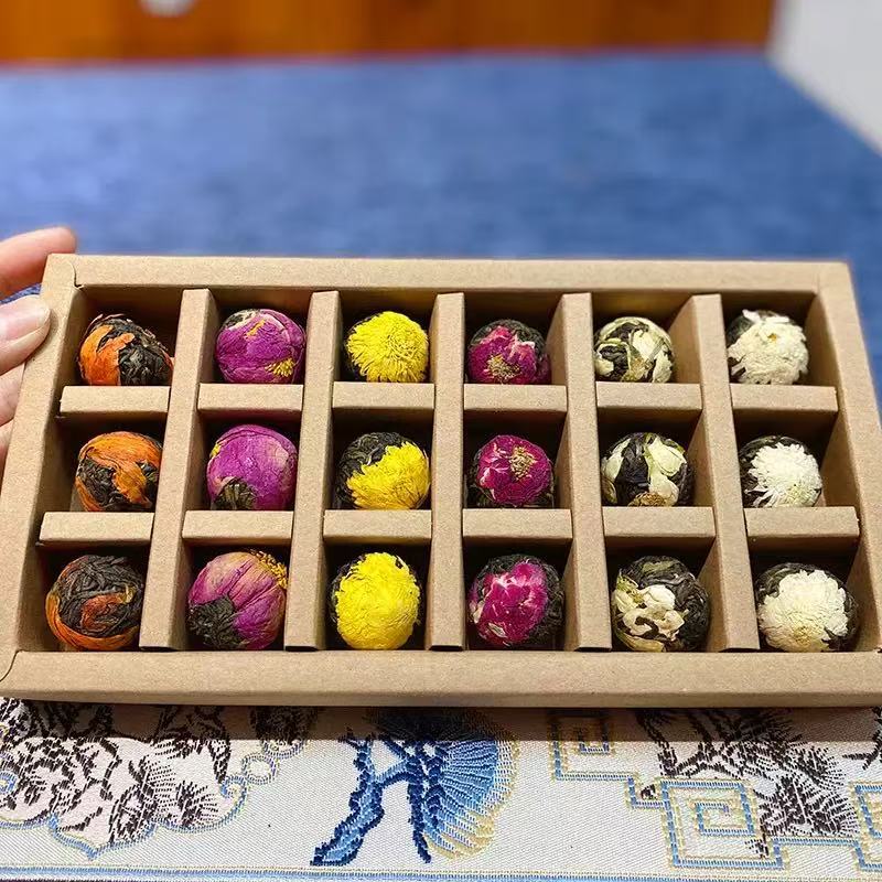 Оптовая продажа чая Пуэр из Юннани, чай с розой и жасмином, сырой чай Пуэр, драконьи шарики, пионовые шарики, 6 вкусов, 18 подарочных коробок