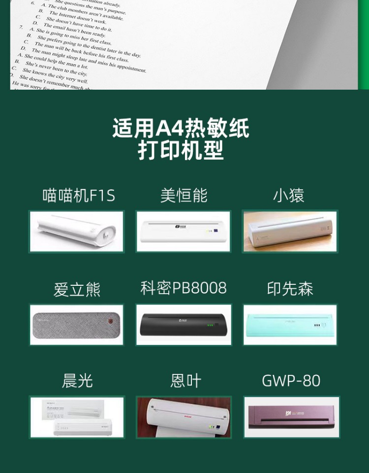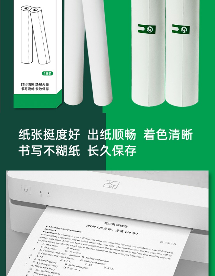 Бумага для печати без чернил 210X30мм для портативного принтера Конфуция, универсальная, 10 рулонов