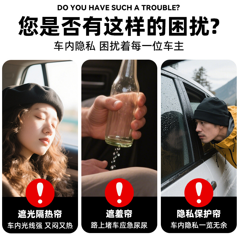 1.隔断车内空间,保护隐私,遮光降噪,四季通用。