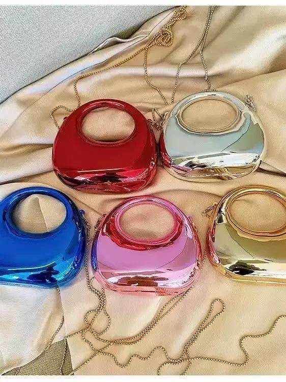 2025 Новая мини акриловая сумка в форме полумесяца, яркая сумка с цепочкой, портативная модная вечерняя сумка через плечо