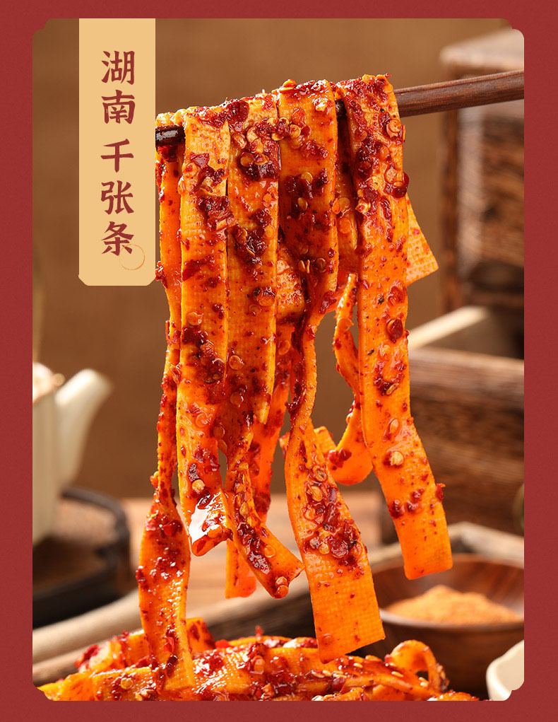 Закуски Рина Специальность Хунани Острые тысячи полосок Упакованные ручные закуски для удовлетворения вашей тяги к закускам
