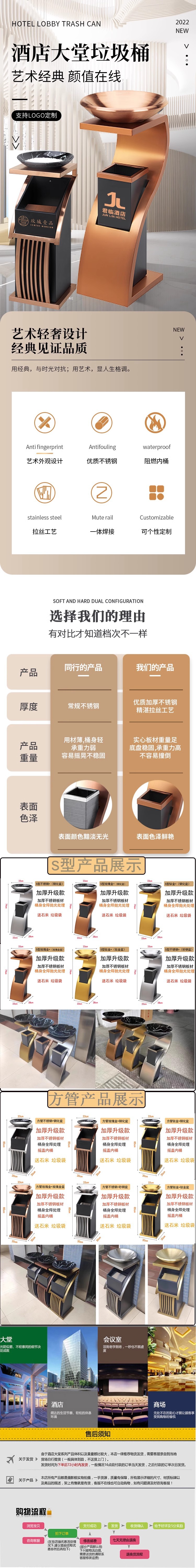 Вертикальная маленькая урна для мусора из нержавеющей стали с пепельницей для отелей и торговых центров