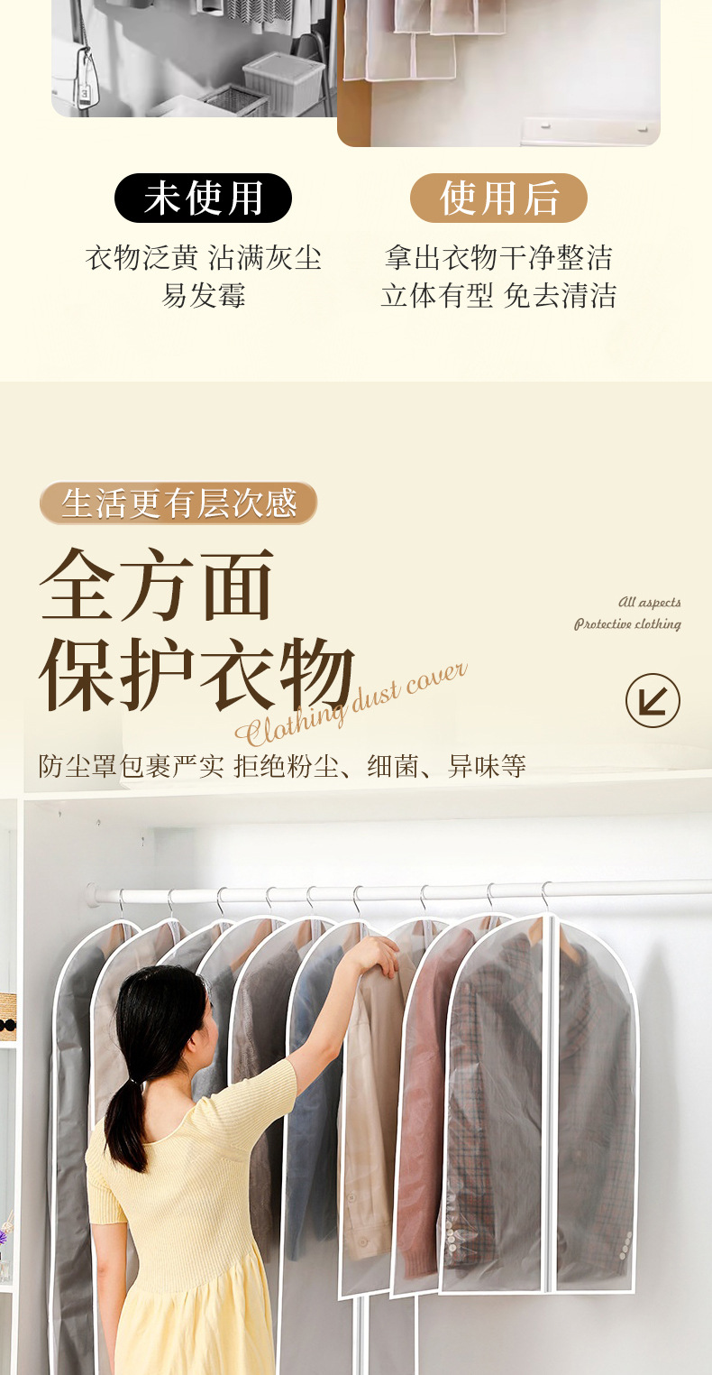 Чехол для одежды, прозрачный чехол для хранения, бытовой нетканевый чехол для костюма, висячий чехол для одежды, чехол от пыли