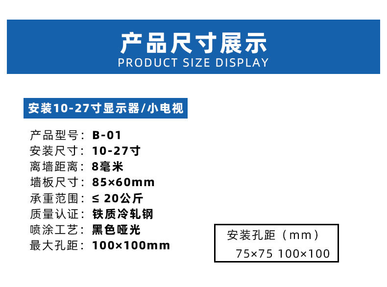 📦 | Black | Configure long screws (suitable for monitors/small tvs) | 1шт: ¥1.70, 100шт: ¥1.60, 1000шт: ¥1.50 | 327189 | 5925306986509 | |