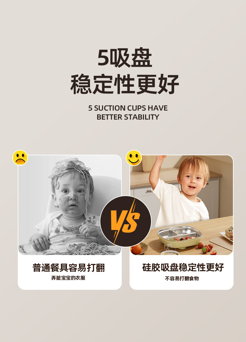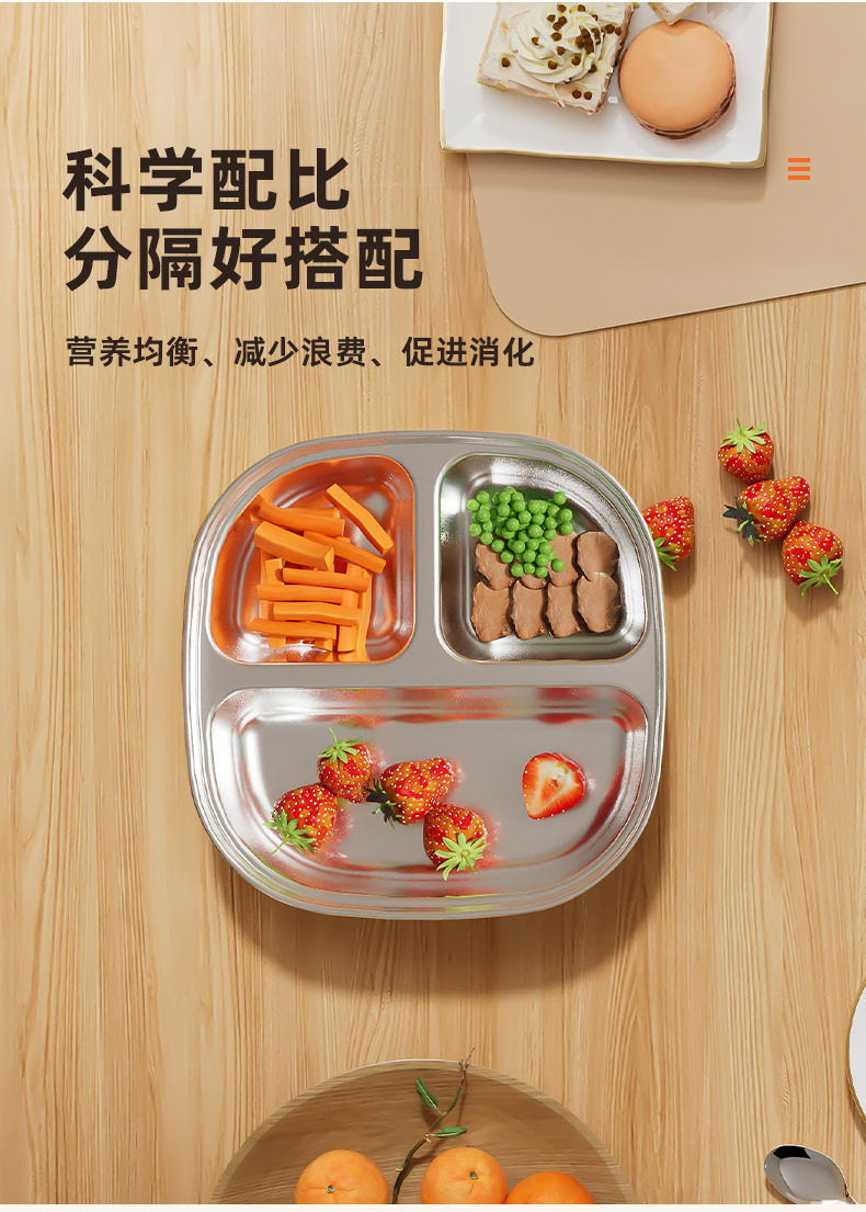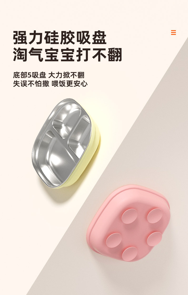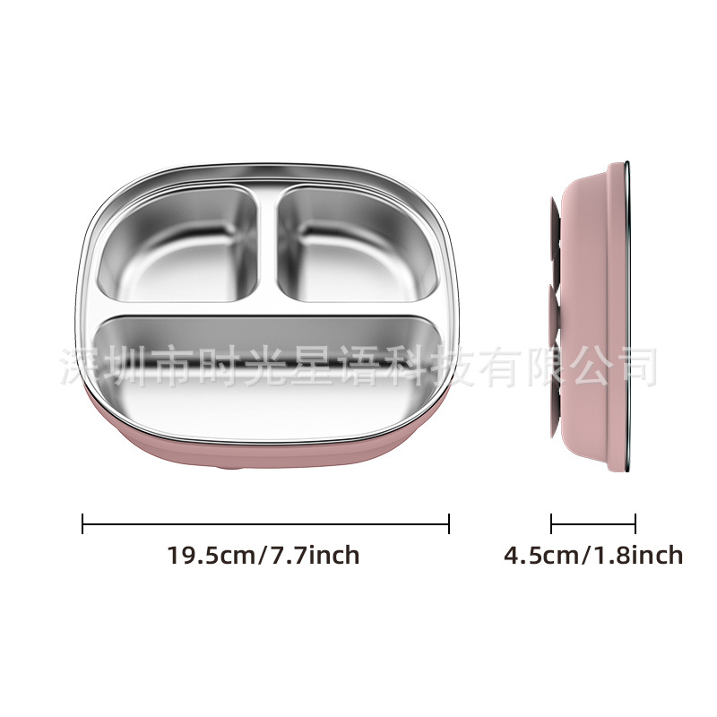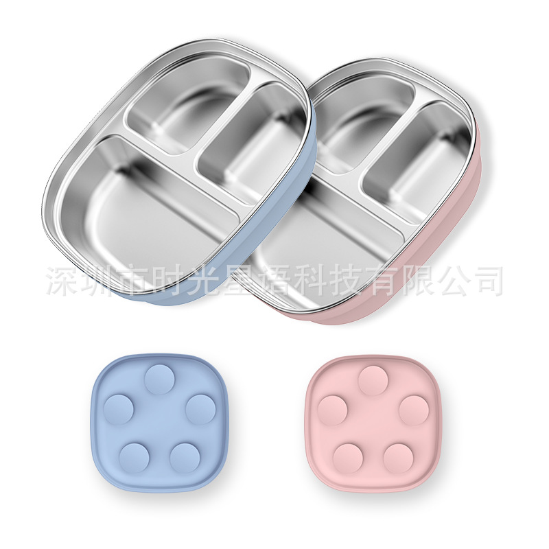 Кросс-бордерная детская квадратная тарелка из нержавеющей стали с силиконовыми присосками, противоударные материалы пищевого класса