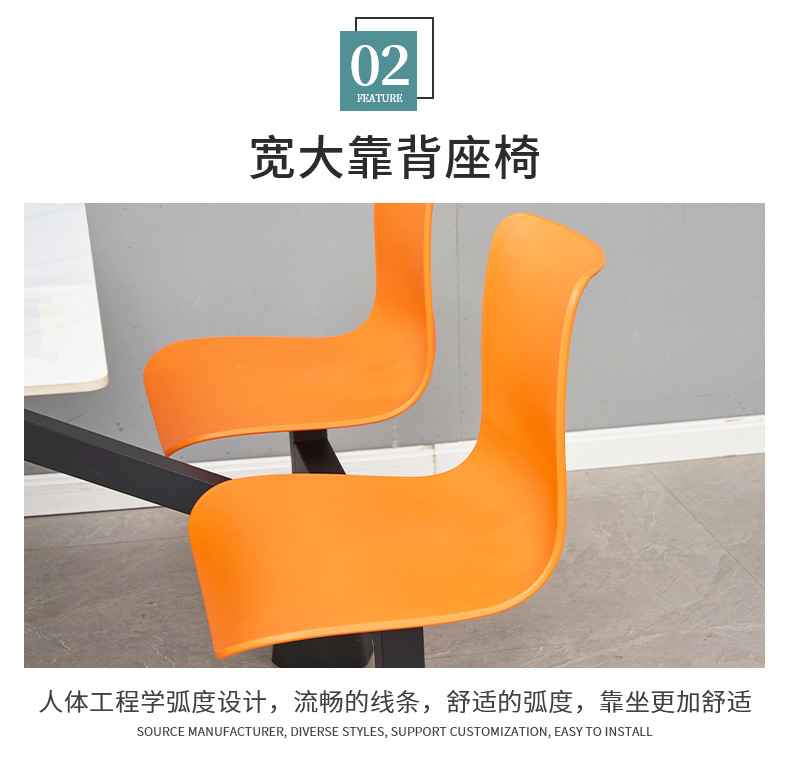 Набор обеденного стола и стульев для школьной столовой на 4 человека, интегрированный стол и стулья для быстрого питания для студентов и сотрудников компании с расширенными ножками