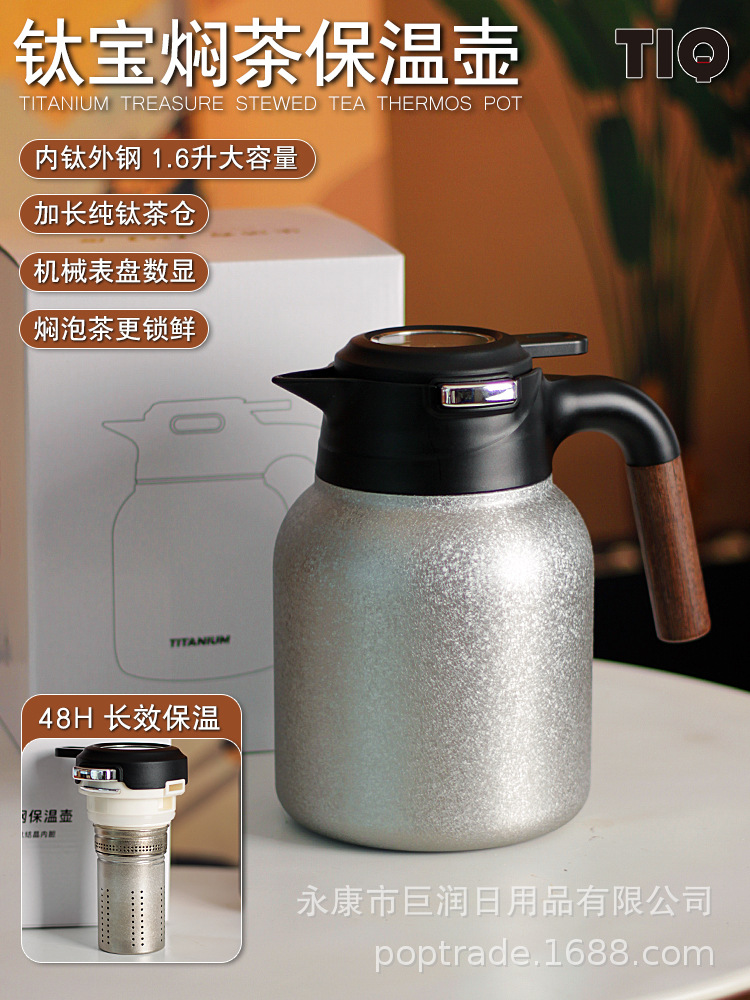 Чайник из чистого титана, с механическим дисплеем температуры, большой объем, термоизоляция, настольный, двойная термоизоляция