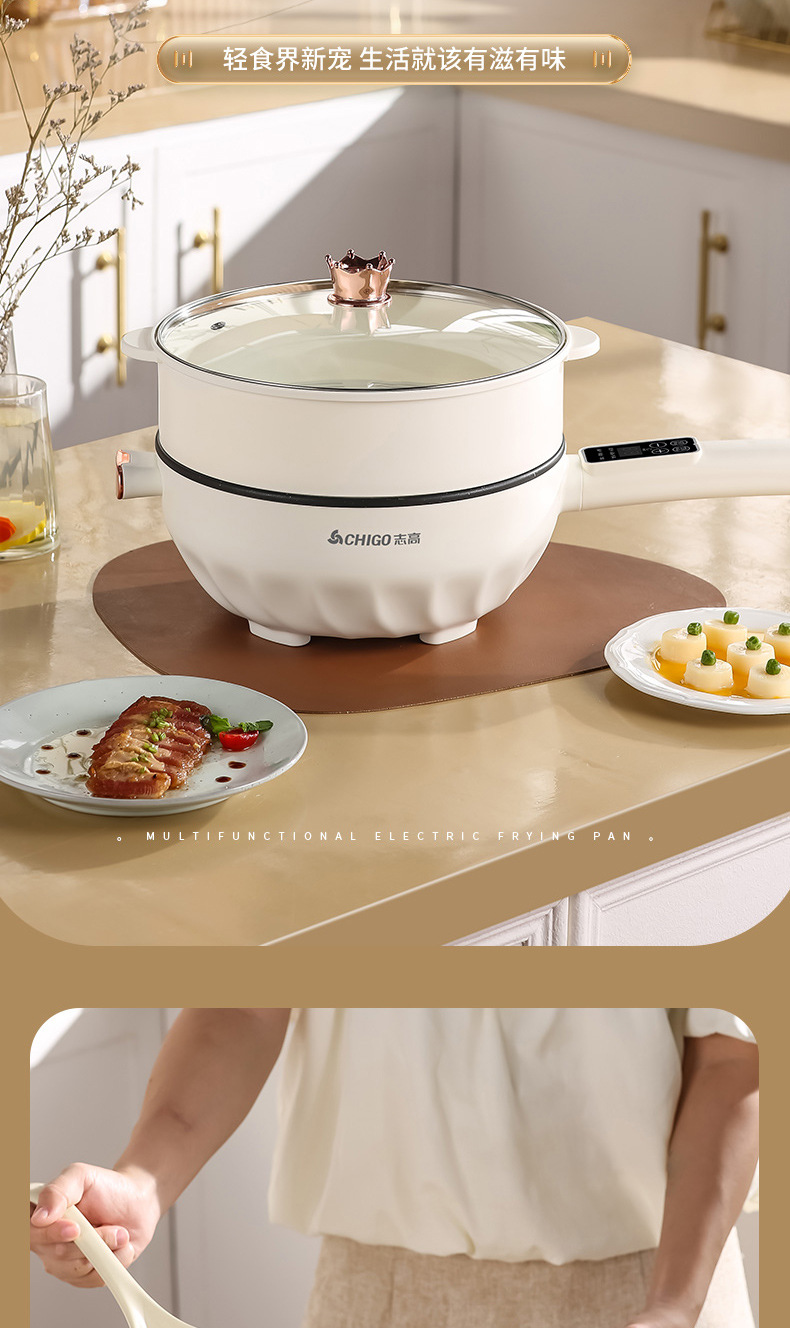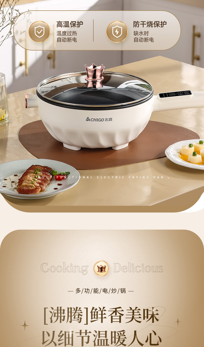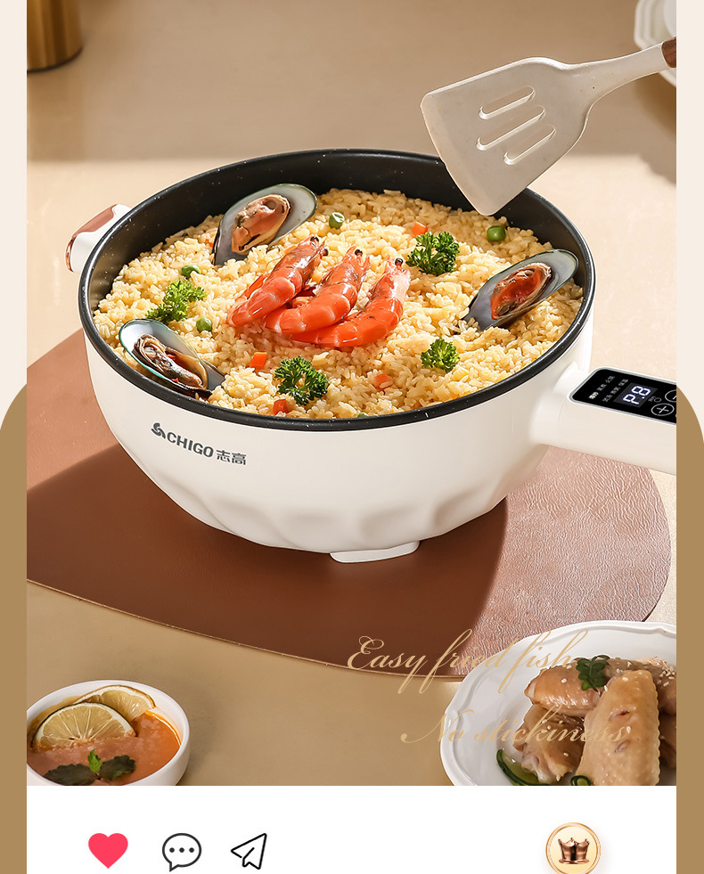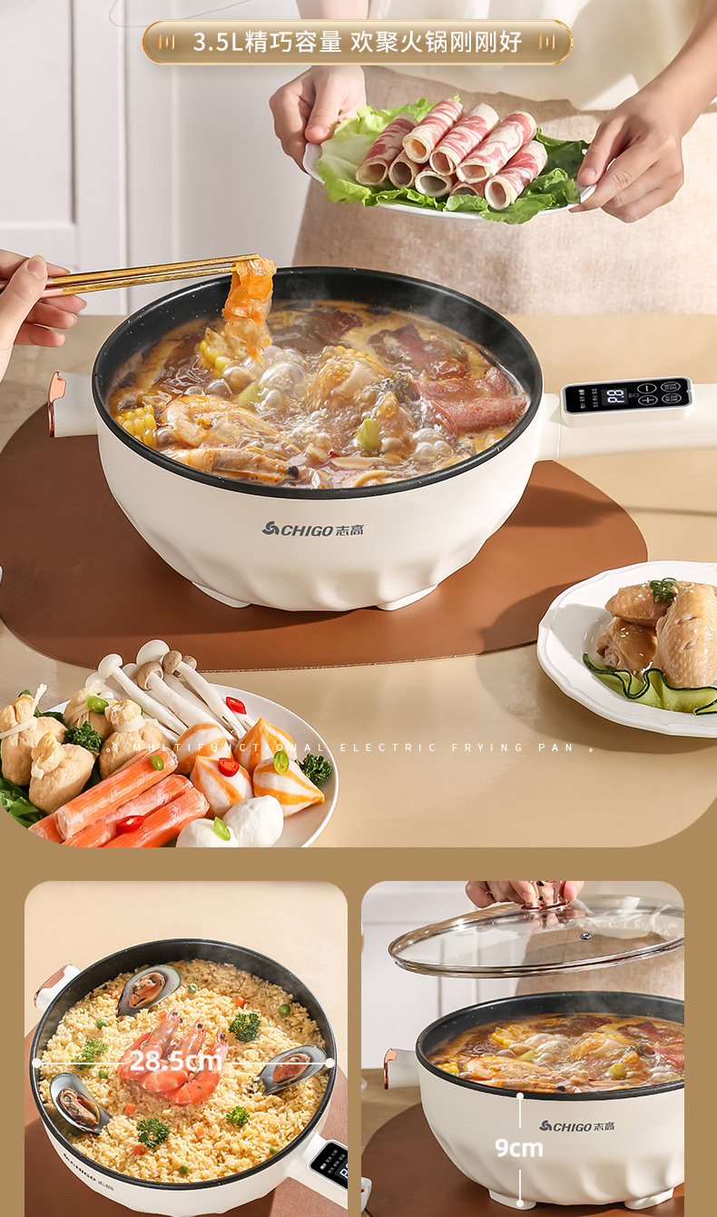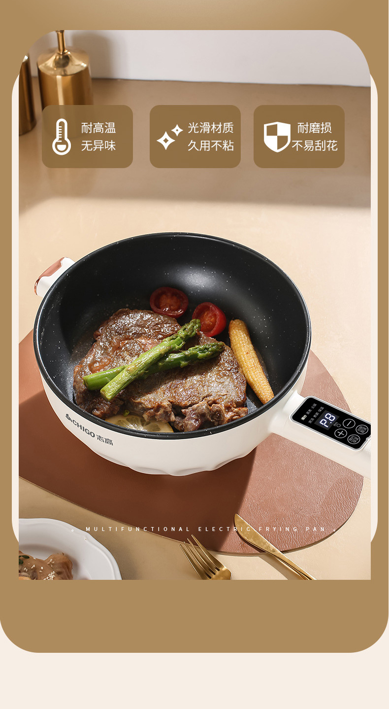 Электрическая сковорода Chigo, многофункциональная, с антипригарным покрытием, электрическая горячая сковорода
