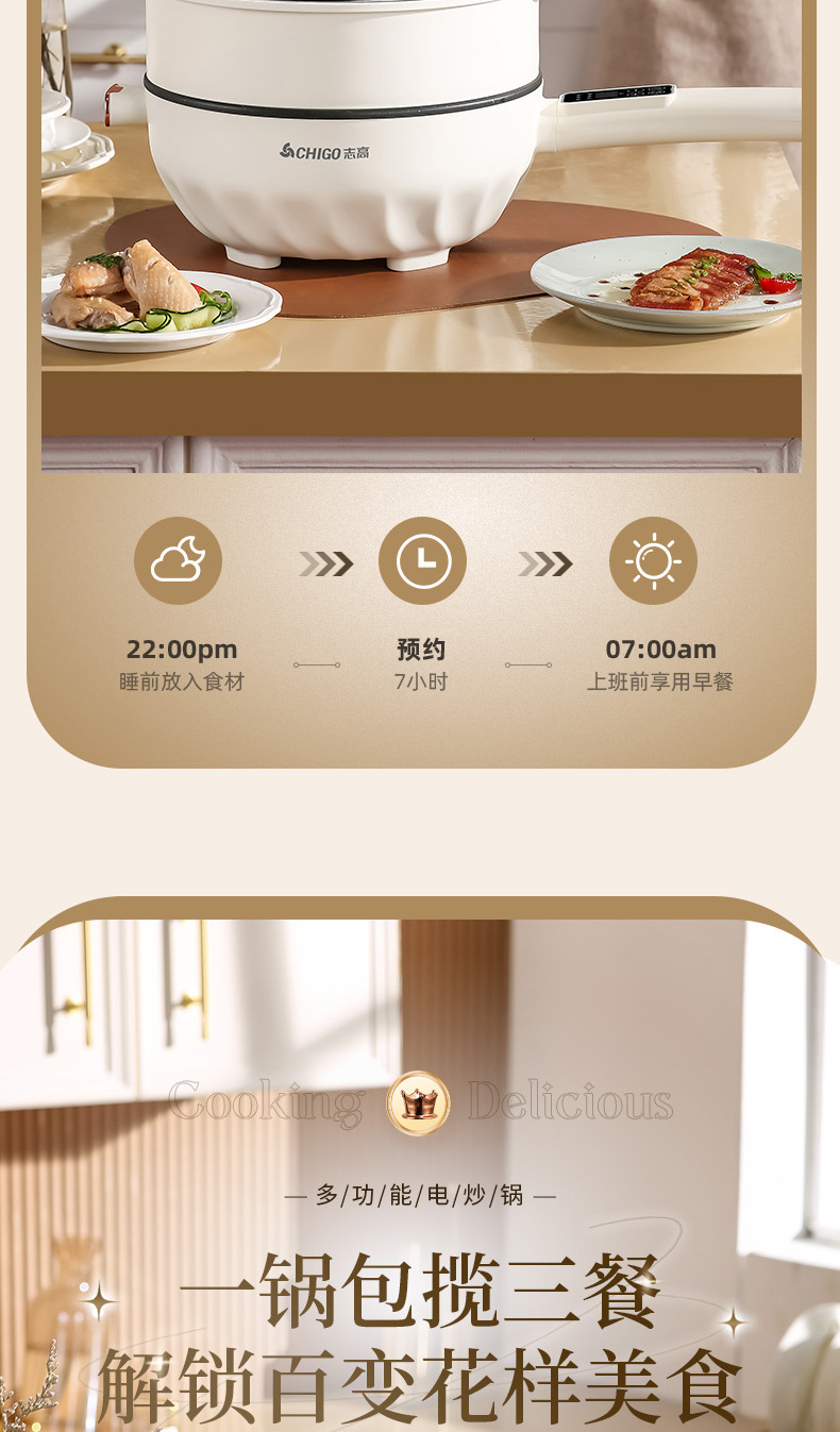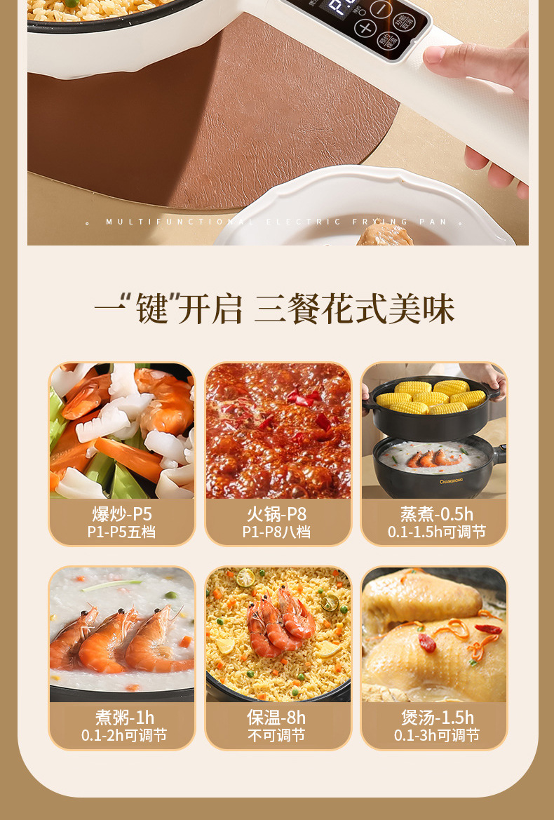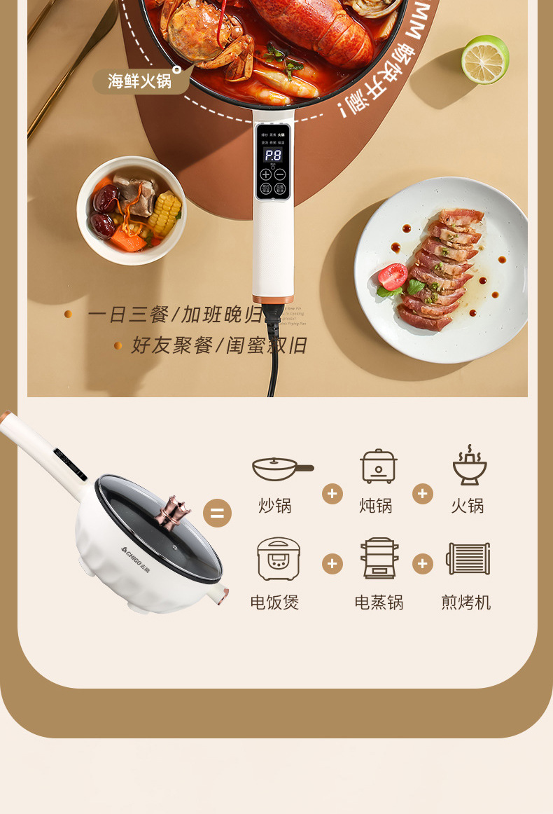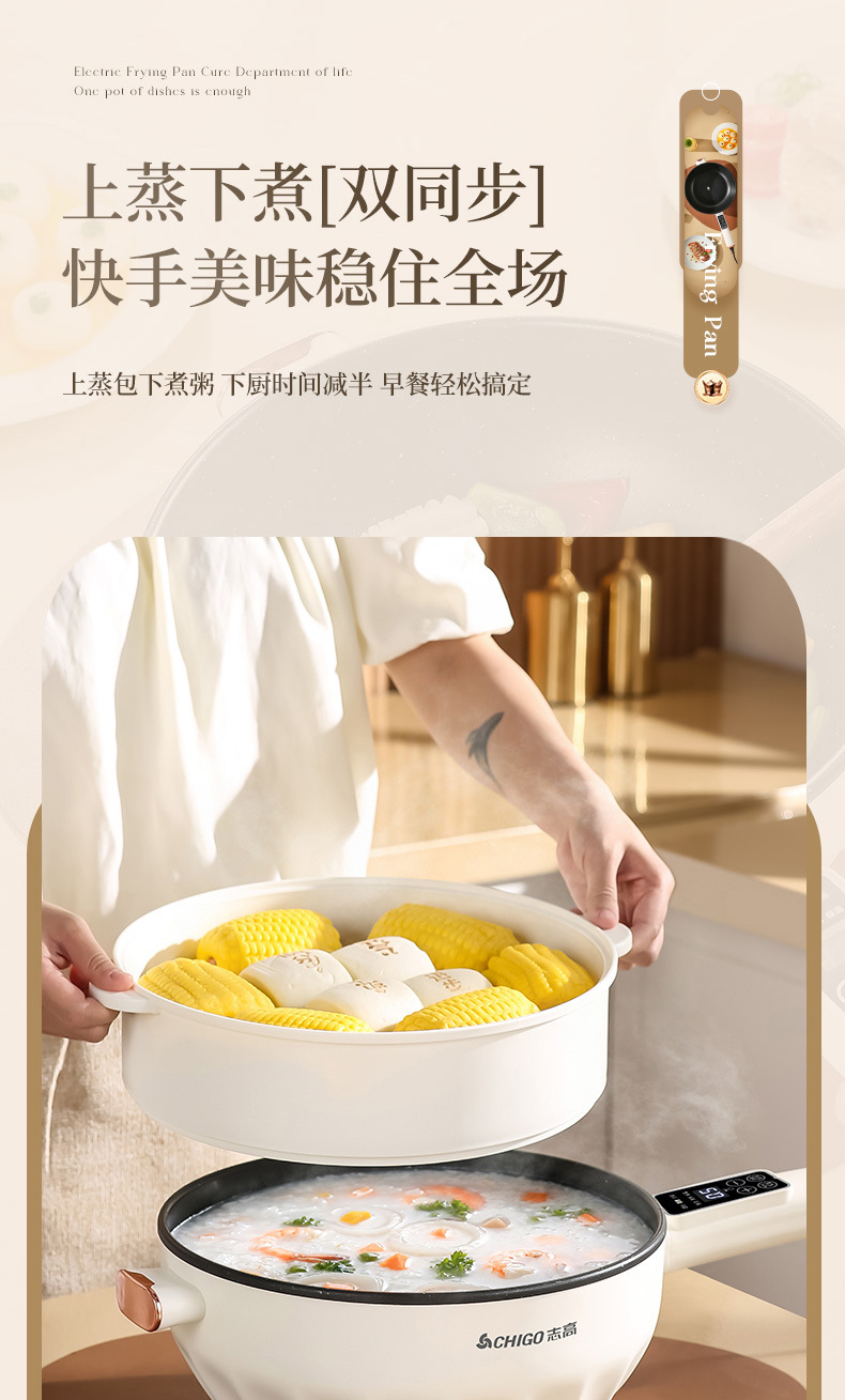 Электрическая сковорода Chigo, многофункциональная, с антипригарным покрытием, электрическая горячая сковорода