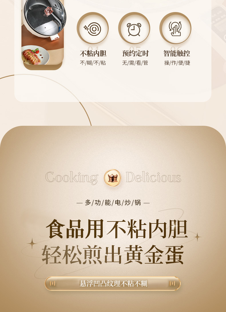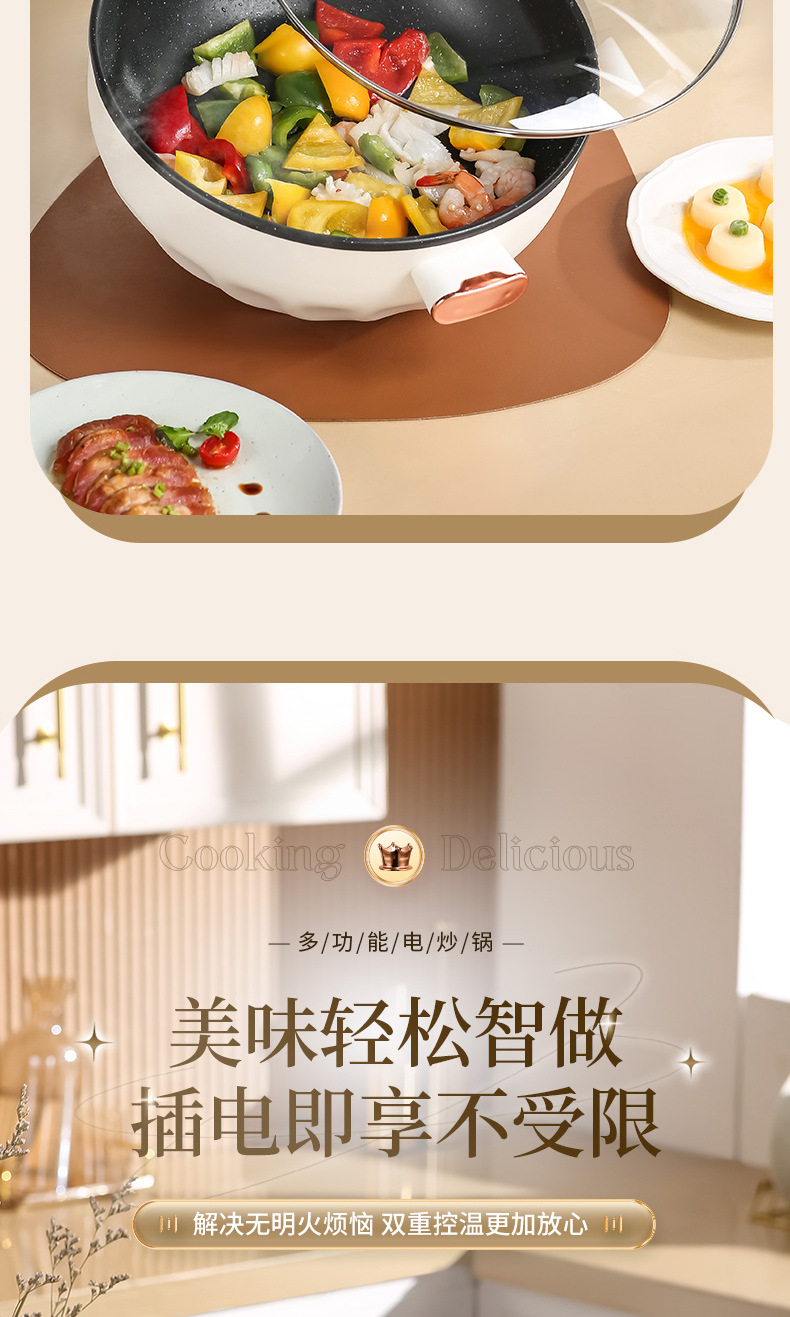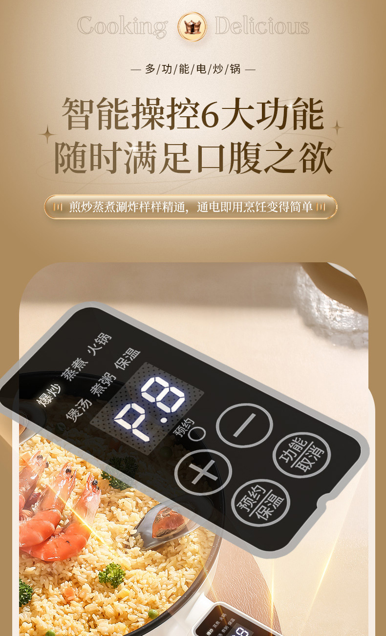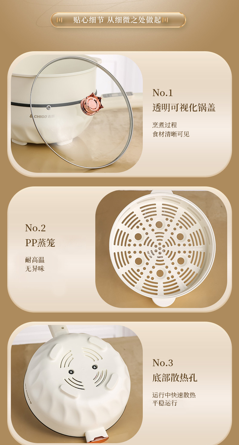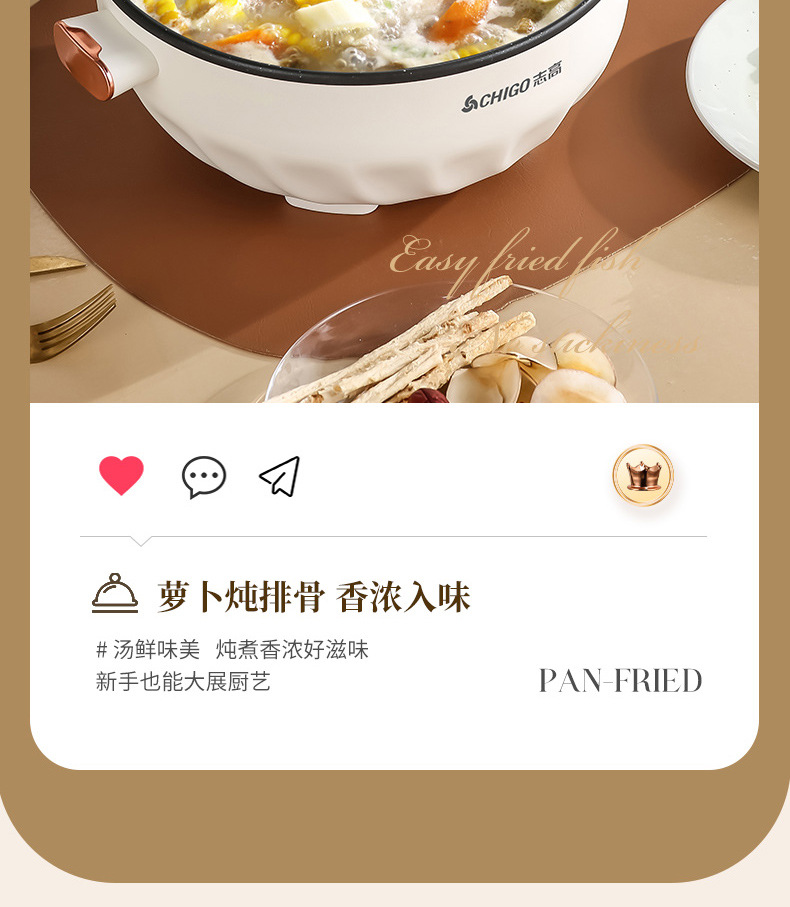 Электрическая сковорода Chigo, многофункциональная, с антипригарным покрытием, электрическая горячая сковорода