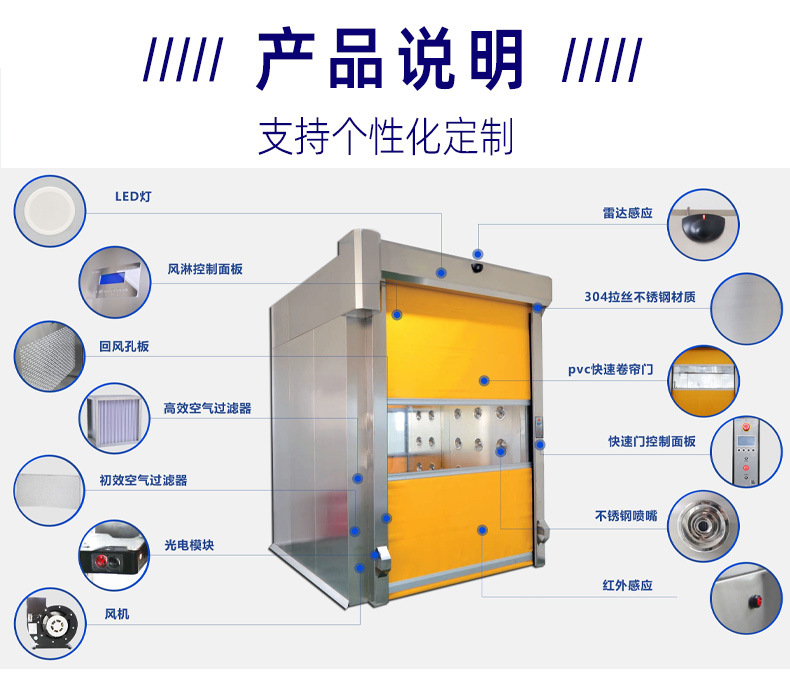 304 нержавеющая сталь одноперсонная L-образная воздушная душевая комната размер обработки мастерской полностью автоматическая индукционная ПВХ быстрая дверь грузовой душевой комнаты